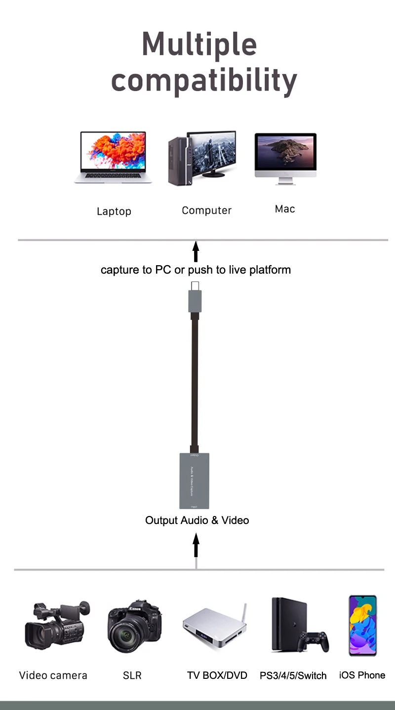 Карта видеозахвата HD 1080P 4K HDMI-совместимая с Type C, USB 2,0, видеозахват для PS4, PS5, XBOX, игр, запись ПК, прямая трансляция