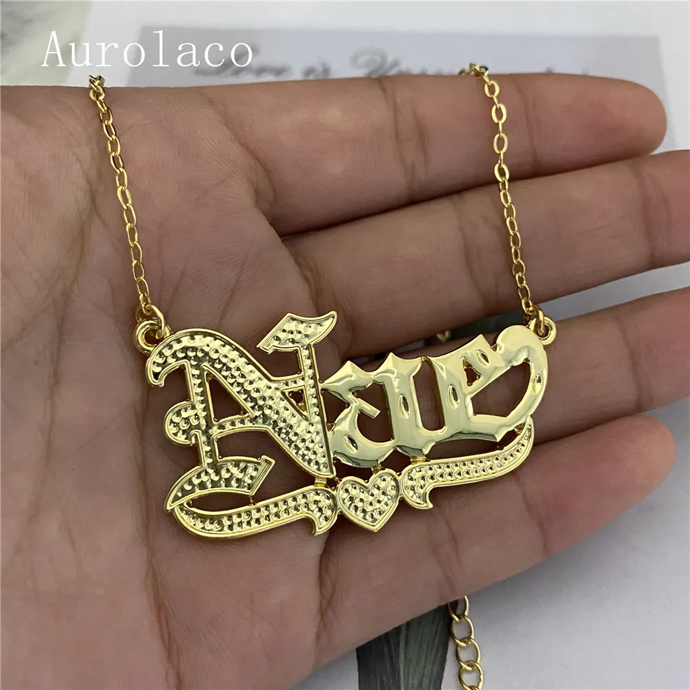 Двойное позолоченное ожерелье с именем на заказ Aurolaco набор акри...