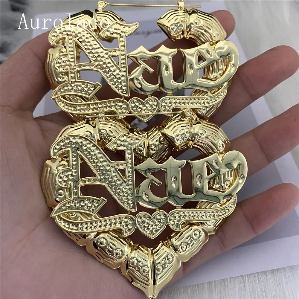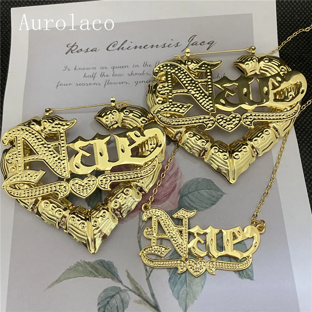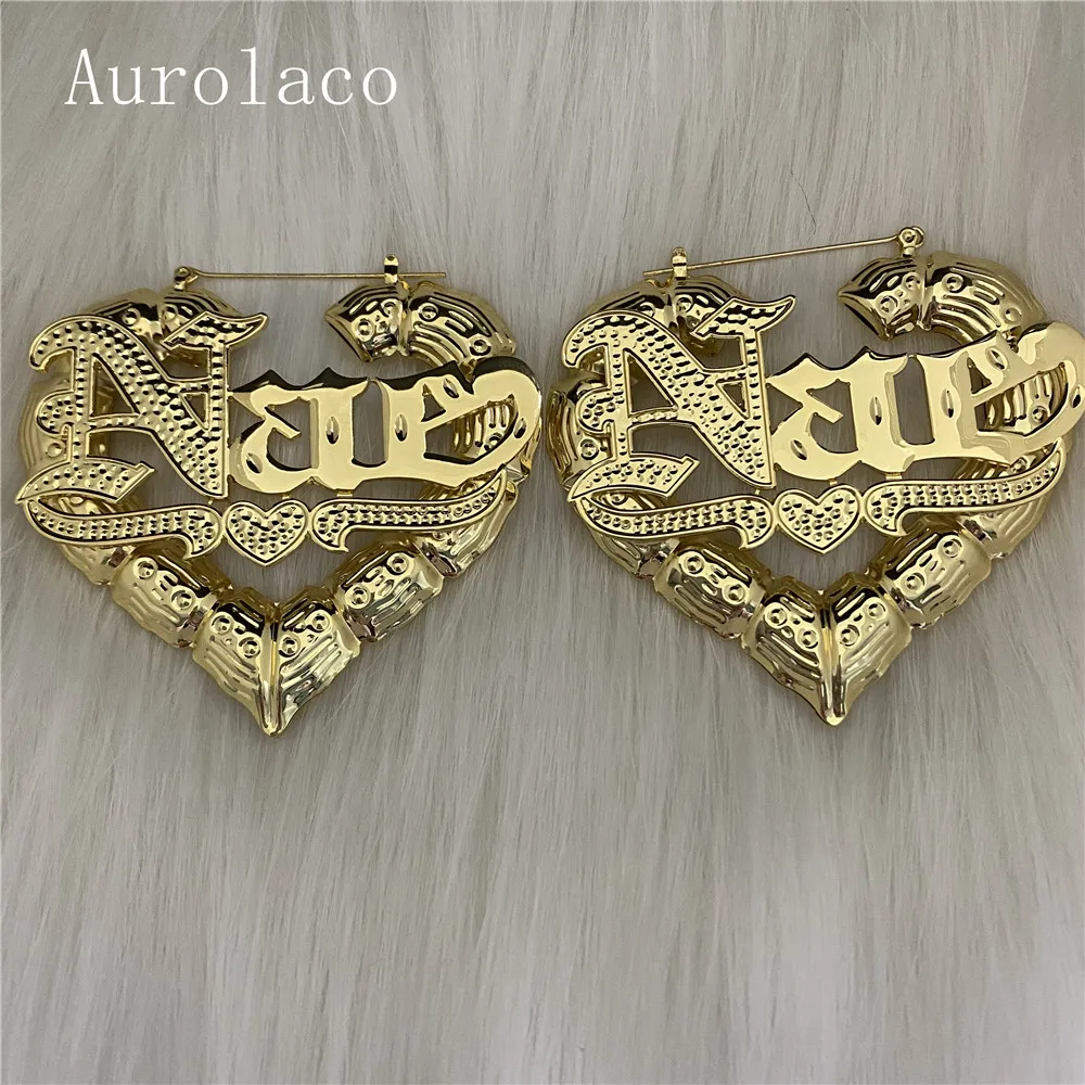 Комплект украшений AurolaCo с именем на заказ, модные новые женские серьги-кольца с именем на заказ, золотые серьги в форме сердца, праздничные подарки