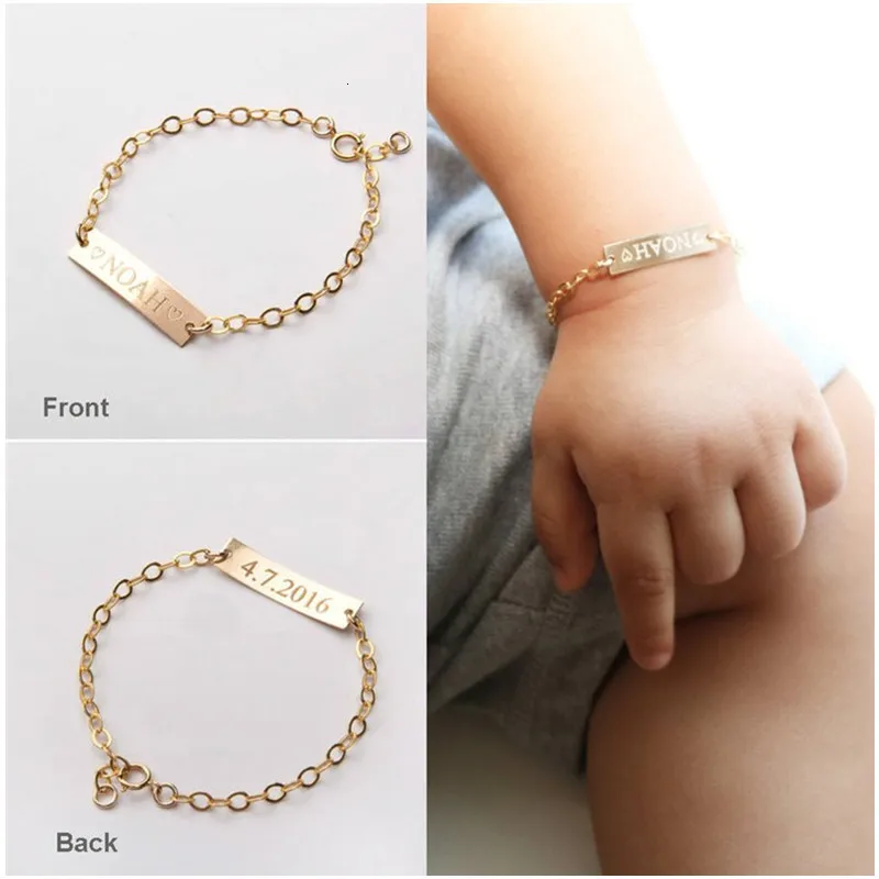 Пользовательские имя ребенка браслет золото нержавеющая сталь опционально шаблон ребенка ID браслет персонализированные день рождения девочки мальчика ювелирные изделия