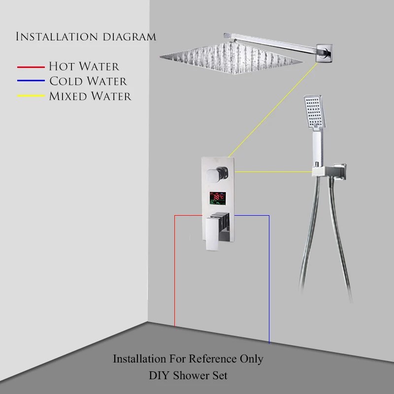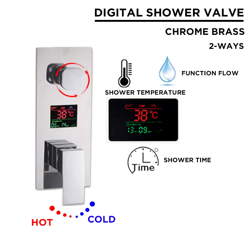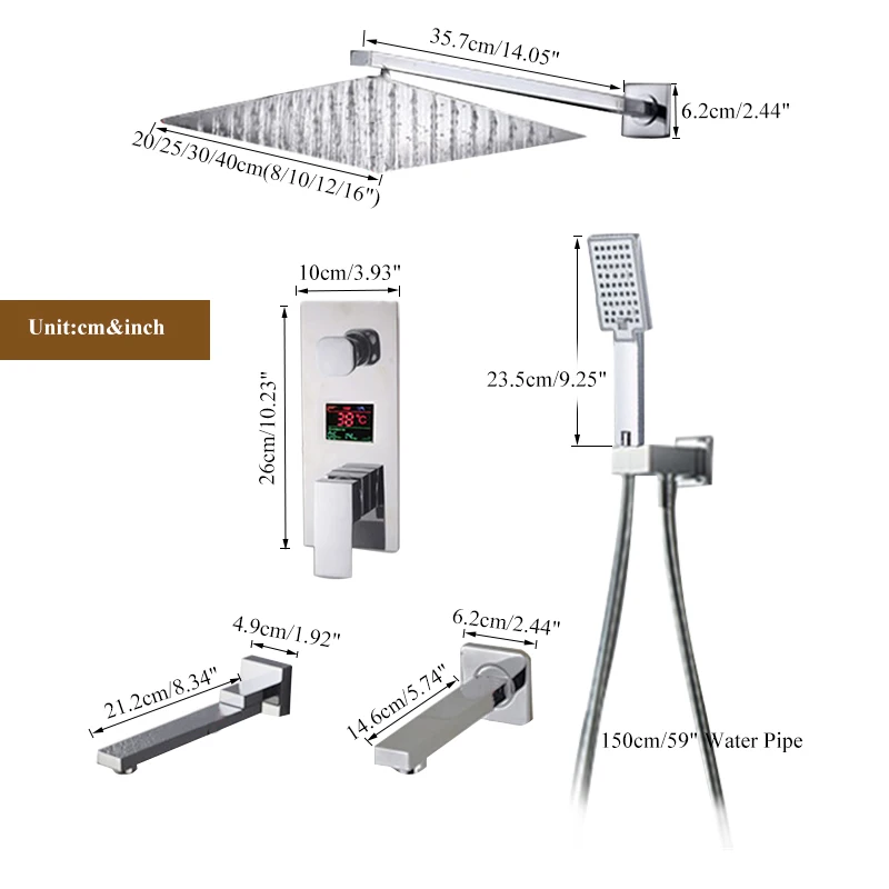 Хромированный смеситель для душа в ванную комнату, дождевая насадка для душа, 23 путей, цифровой дисплей, экран, смеситель, кран с ручной душевой системой