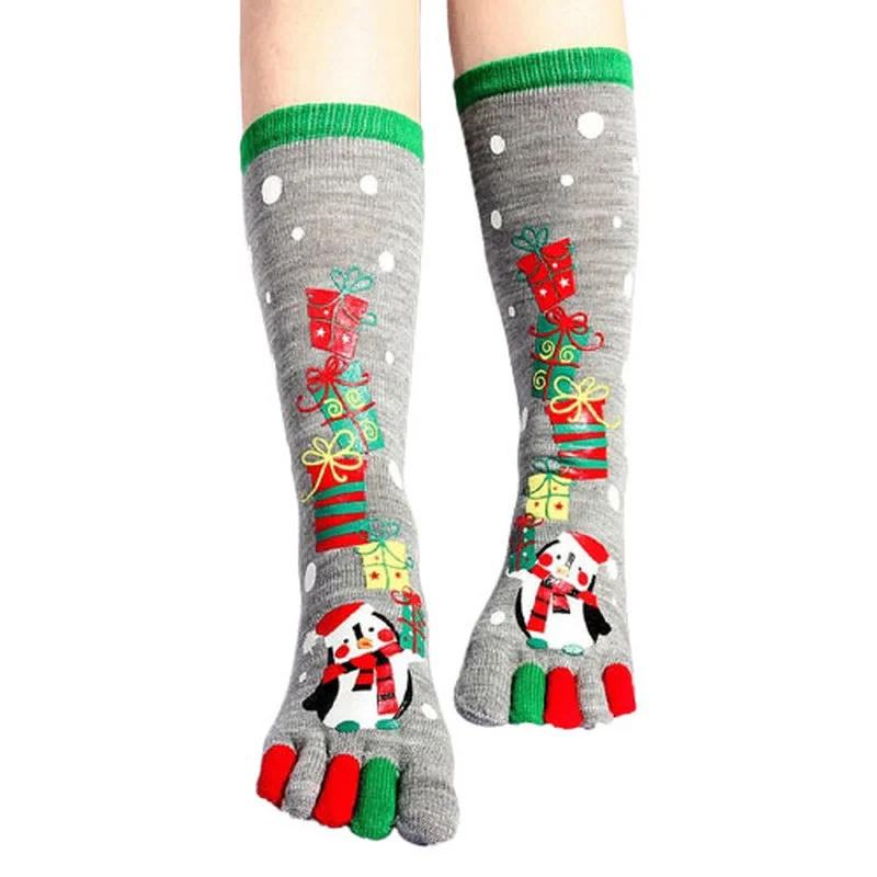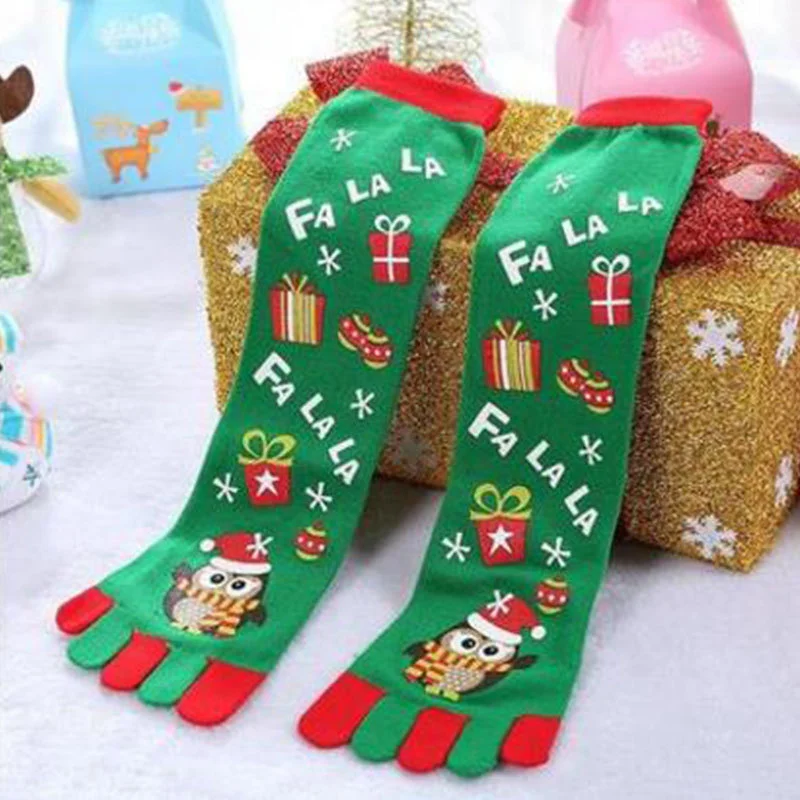 Новинка 2022, модные женские носки с забавным мультяшным принтом, с пятью пальцами, повседневные Мягкие носки, женские рождественские носки