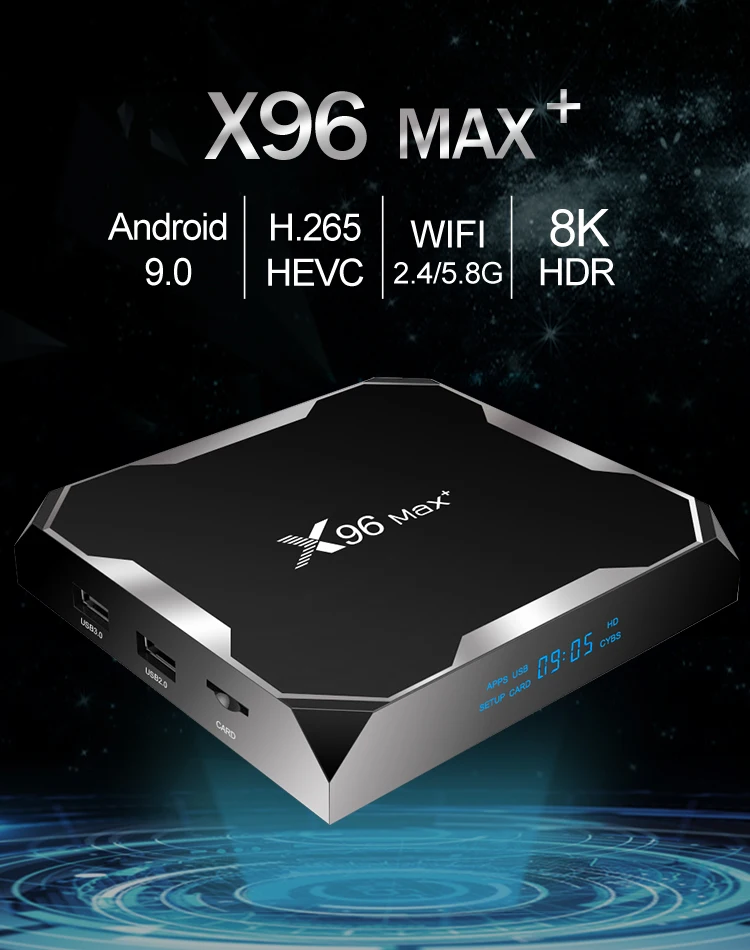 -CPU: четырехъядерный процессор Amlogic S905X3 ARM Cortex A55;-GPU: ARM Mali-G31MP;-ОС: Android 9,0;-Поддержка HD: 8K @ 24fps, 4K @ 60fps, UHD, HDR +, Airplay, Miracast-Поддержка HD 2,1, USB3.0, USB2.0-Поддержка 2,4 GHz Wifi/2,4G + 5,8 GHz Dual Wifi, BT4.0.-Есть три варианта для X96 MAX PLUS:A: 2 ГБ + 16 ГБ + 2,4 и 5G двойной Wif + 100 м (без функции BT)B: 4 Гб + 32 ГБ + 2,4 и 5G двухъядерный процессор Wi-Fi + BT4.0 + 100 мC: 4 Гб + 64 ГБ + 2,4 и 5G двухъядерный процессор Wi-Fi + BT4.0 + 100 м