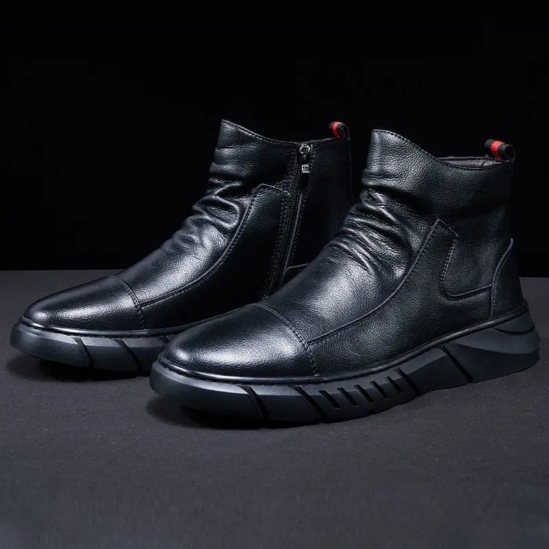 Мужские зимние ботинки, мужская обувь из искусственной кожи TPR, новинка 2020, модные зимние ботинки с коротким плюшем и теплым мехом, мужские ботинки