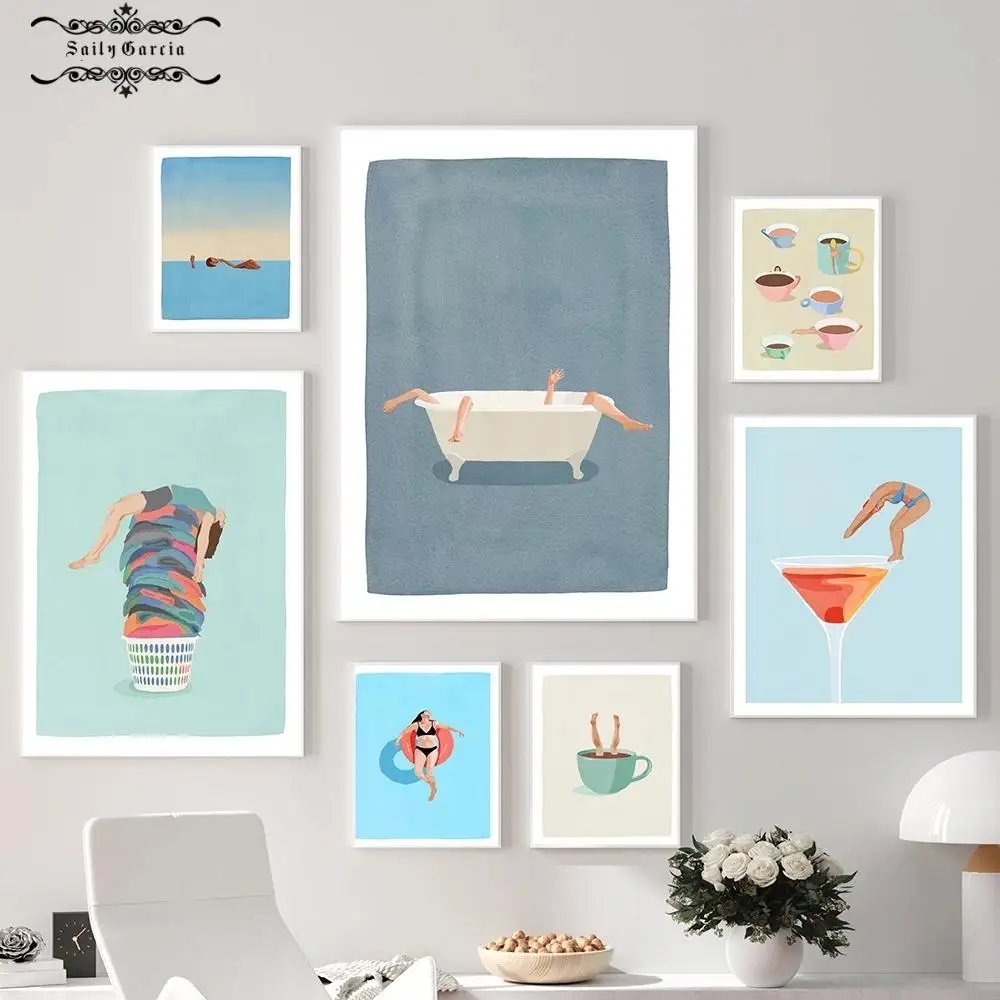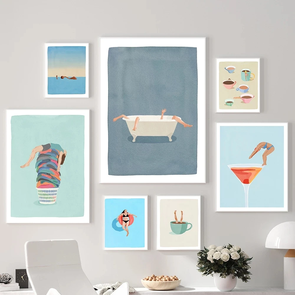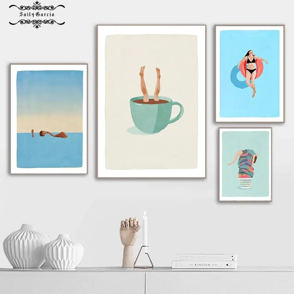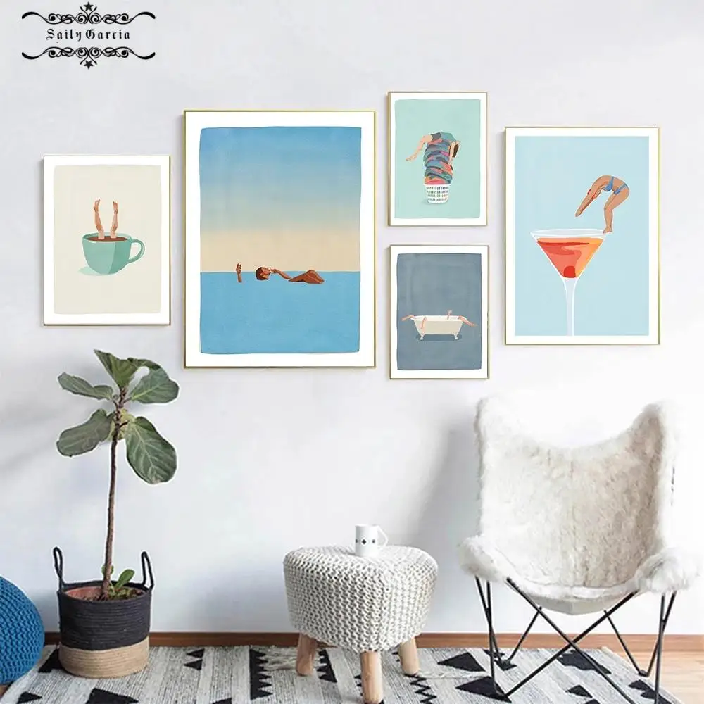 Минималистичная картина для отдыха коктейль кофе девушки скандинавские настенные картины на холсте плакаты принты для интерьера Современный домашний декор