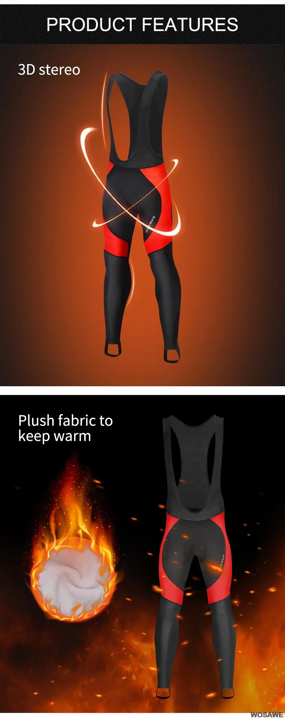 WOSAWE Велоспорт Bib колготки имеет эргономичный дизайн с флисовой ткани, предназначен для уменьшения трения и улучшения посадки и сделать тепло для повышения производительности.