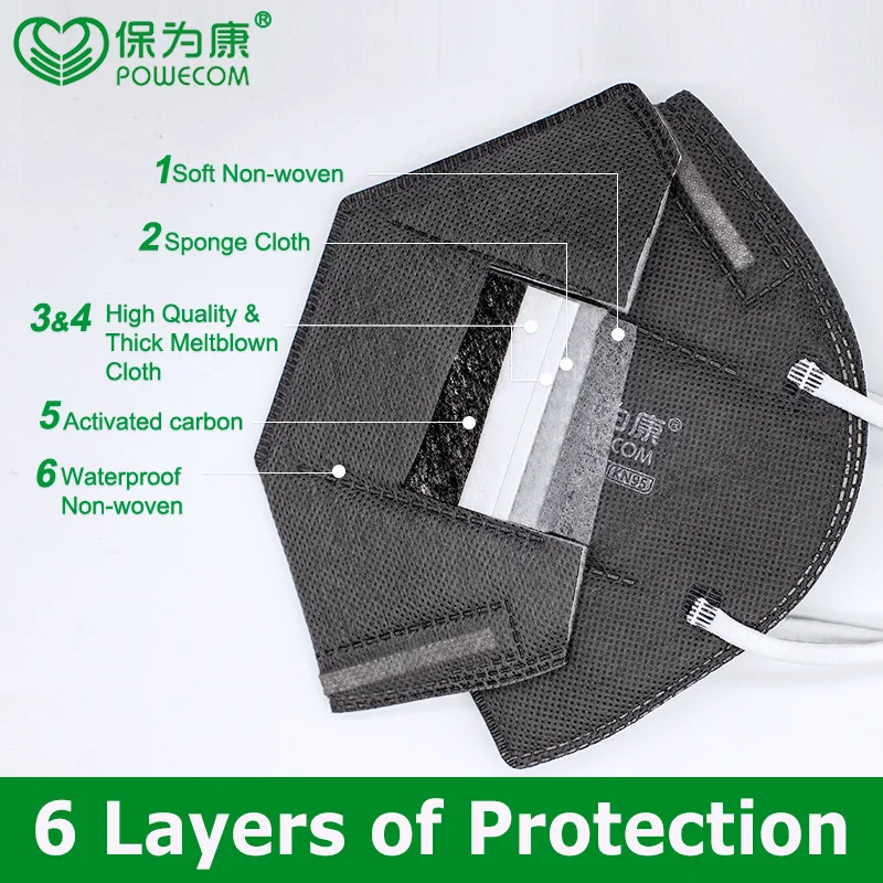 60 шт.коркор. маска KN95 с активированным углем POWECOM, защитная маска для лица, противопылевая мундштук, крышка mascarilla tapabocas