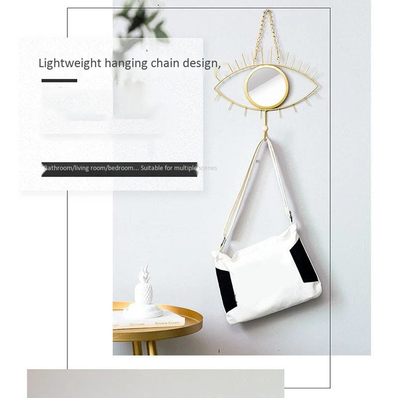 Креативное зеркало для макияжа в форме глаза с золотой отделкой, декоративное зеркало с ювелирным крючком, настенное украшение-ABUX