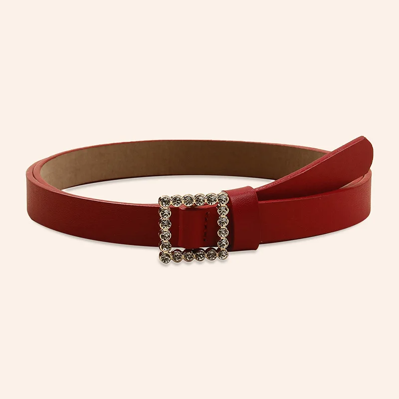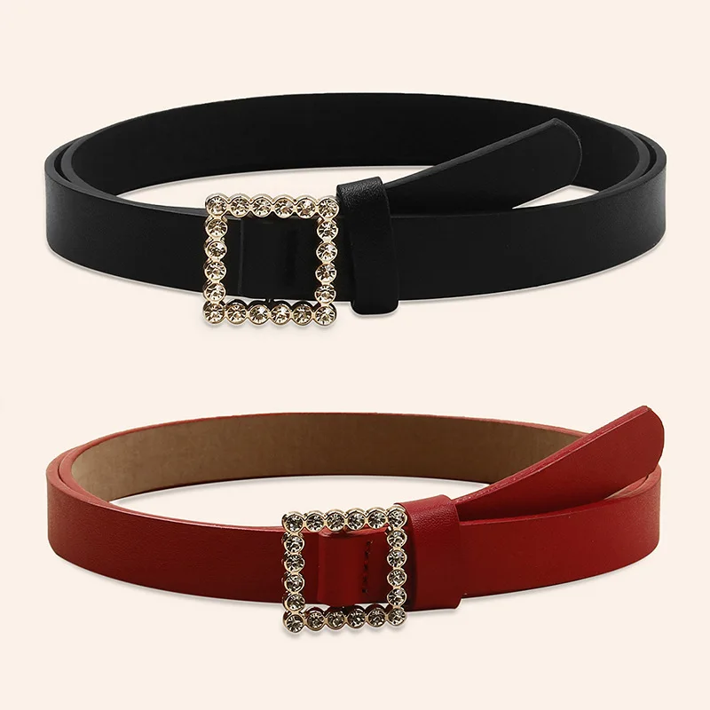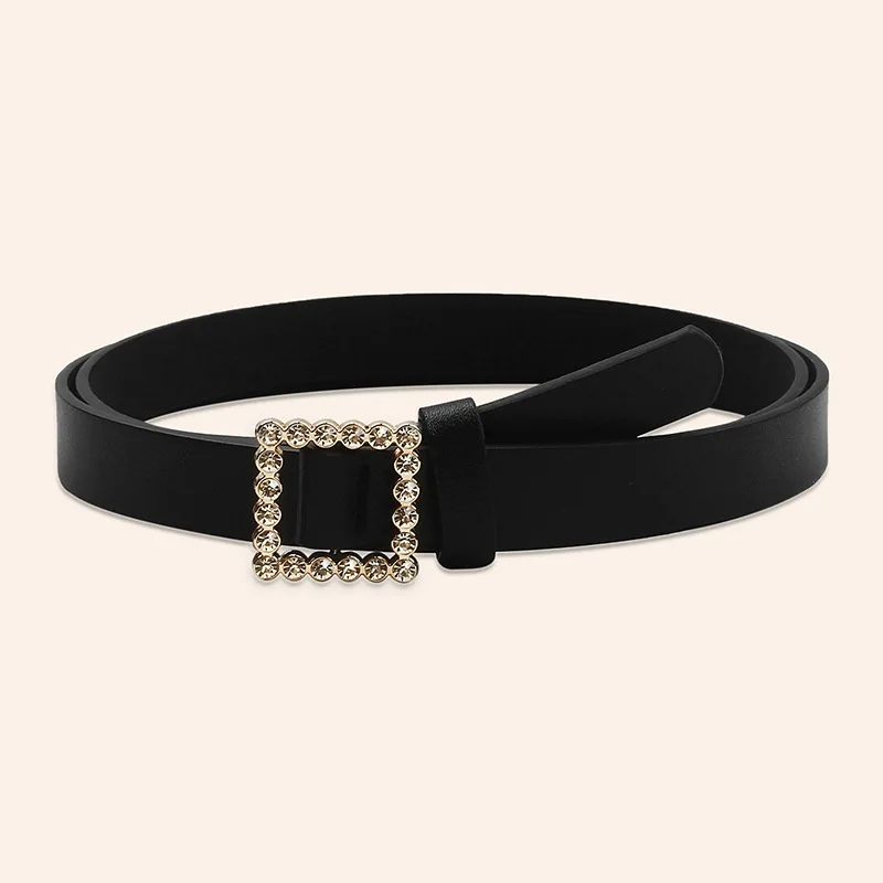 Кожаный ремень женский модный однотонный ремень из сплава с квадратной гладкой пряжкой инкрустированный стразы украшение милый стиль ремень для женщин