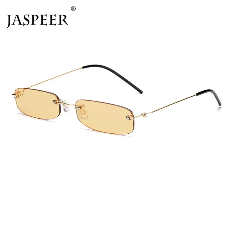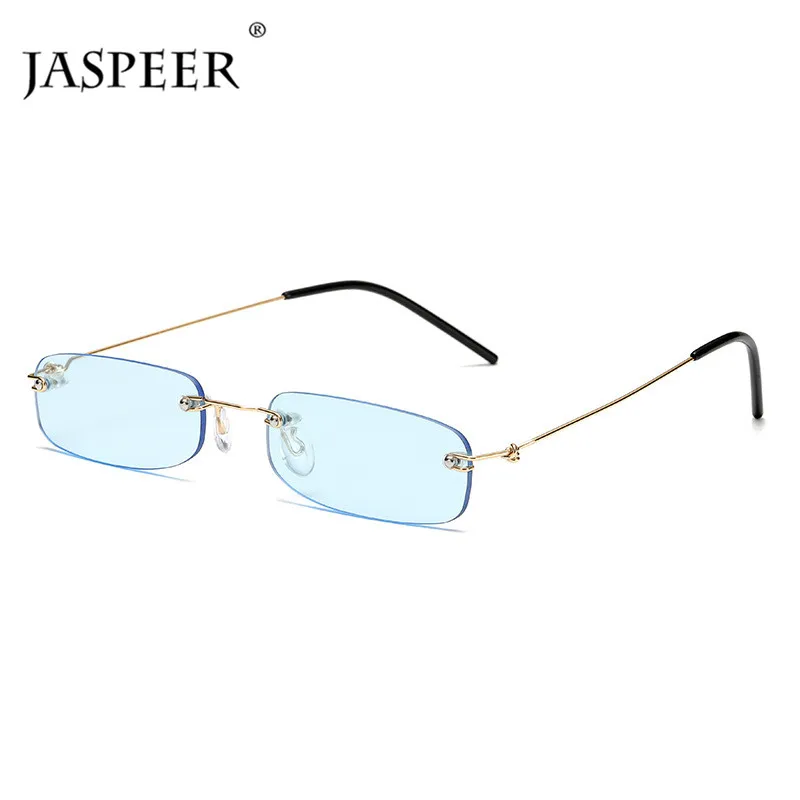Солнцезащитные очки JASPEER в стиле ретро для мужчин и женщин, узкие прямоугольные солнечные очки без оправы, с маленьким лицом, в стиле панк