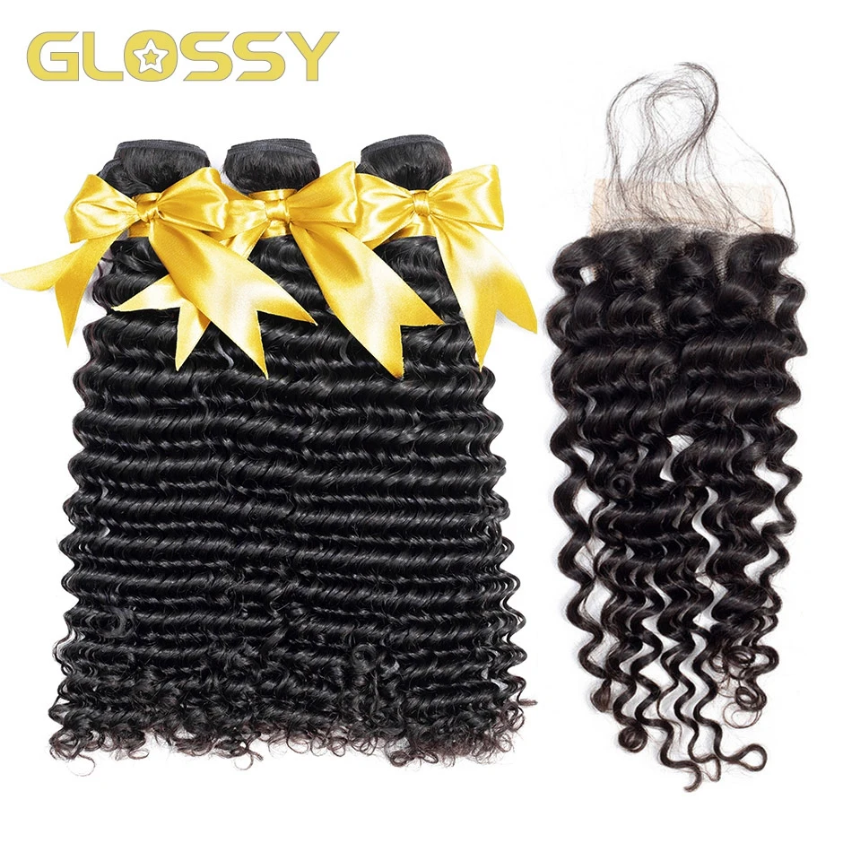 Глубокая волна 3 пряди с кружевной застежкой 4x4