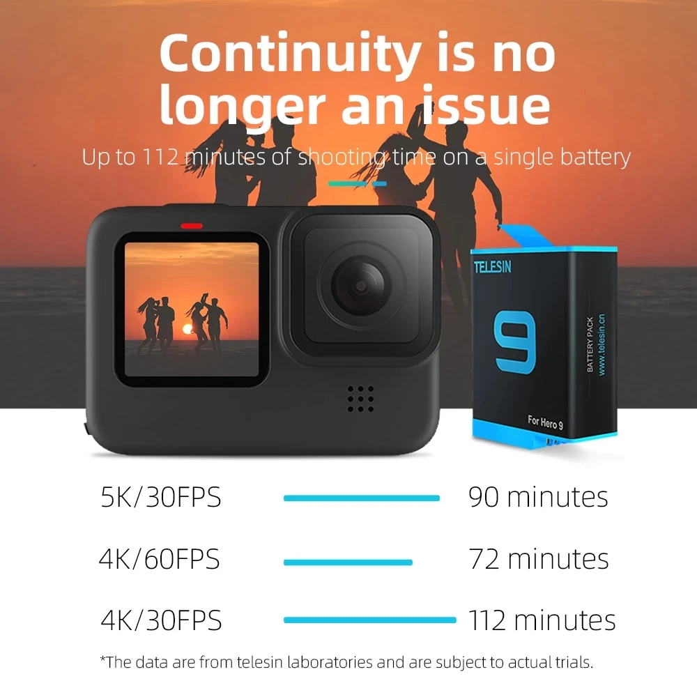 TELESIN для GoPro 9 10 Аккумулятор 1750 мАч запасная батарея для GoPro Hero 9 10 Черные Аксессуары для экшн-камеры