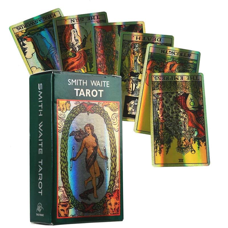 Новейшая лазерная вспышка Позолоченные легкие карты Таро колода таинственное ведение гадания судьба Таро карты настольная игра для друзей семьи