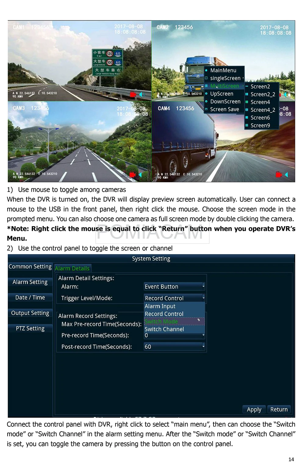 AHD Camerassupport 4pcs 1080P Cameras(not included)