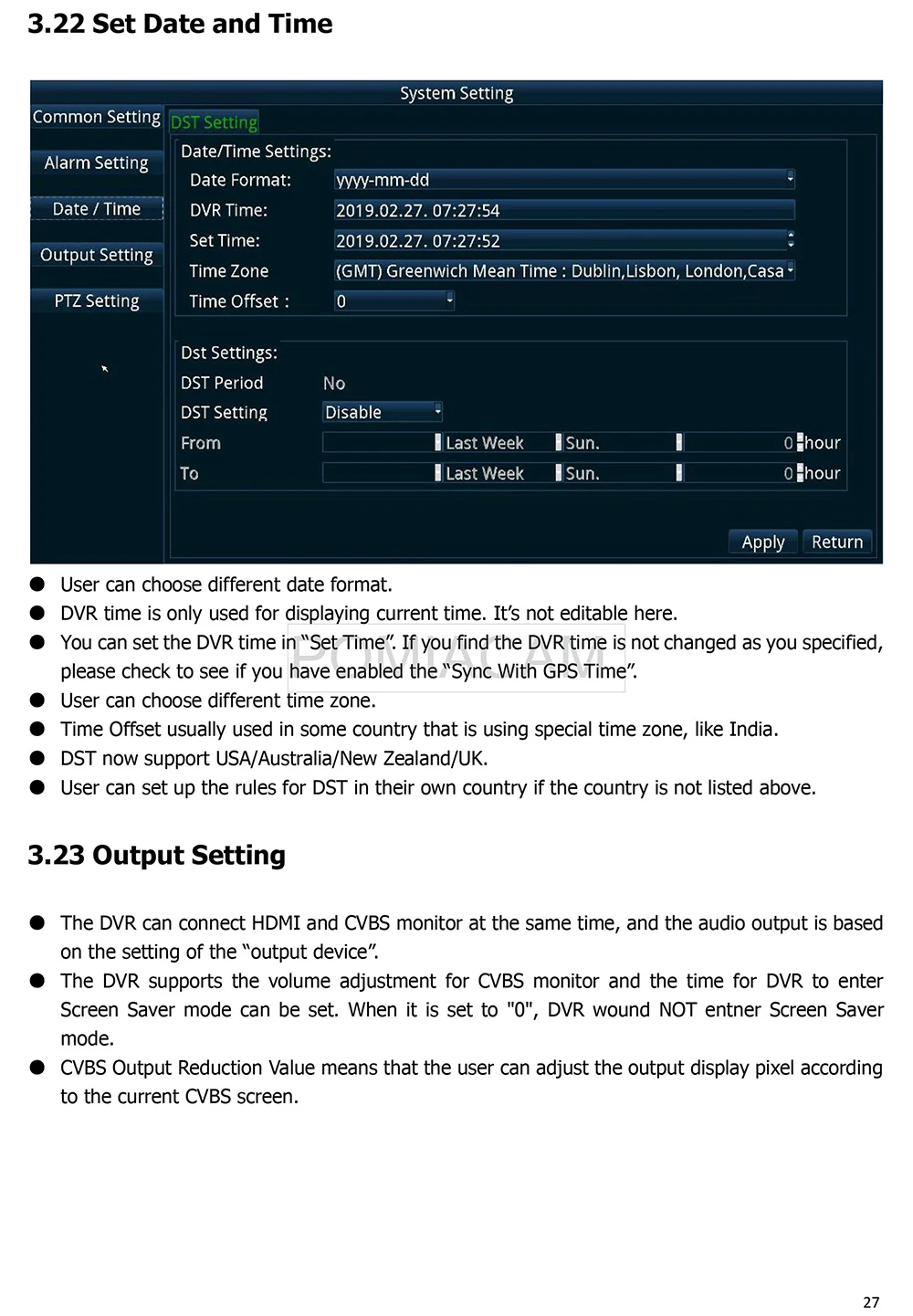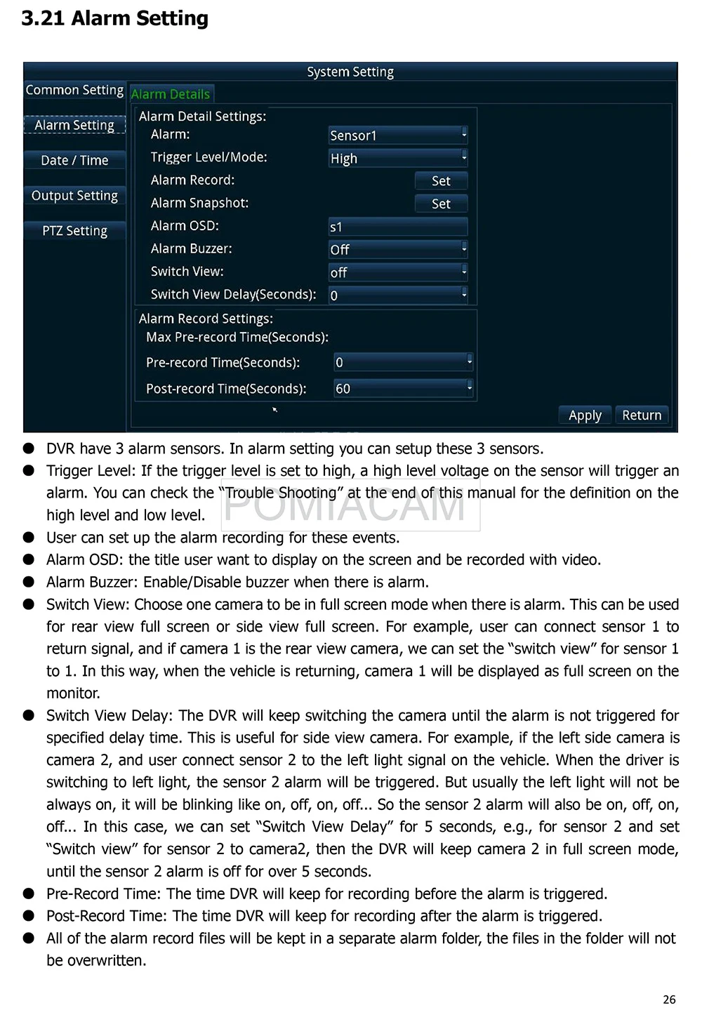 · Чувство зажигания, которое обеспечивает включение DVR в режиме записи, когда автобус включен.