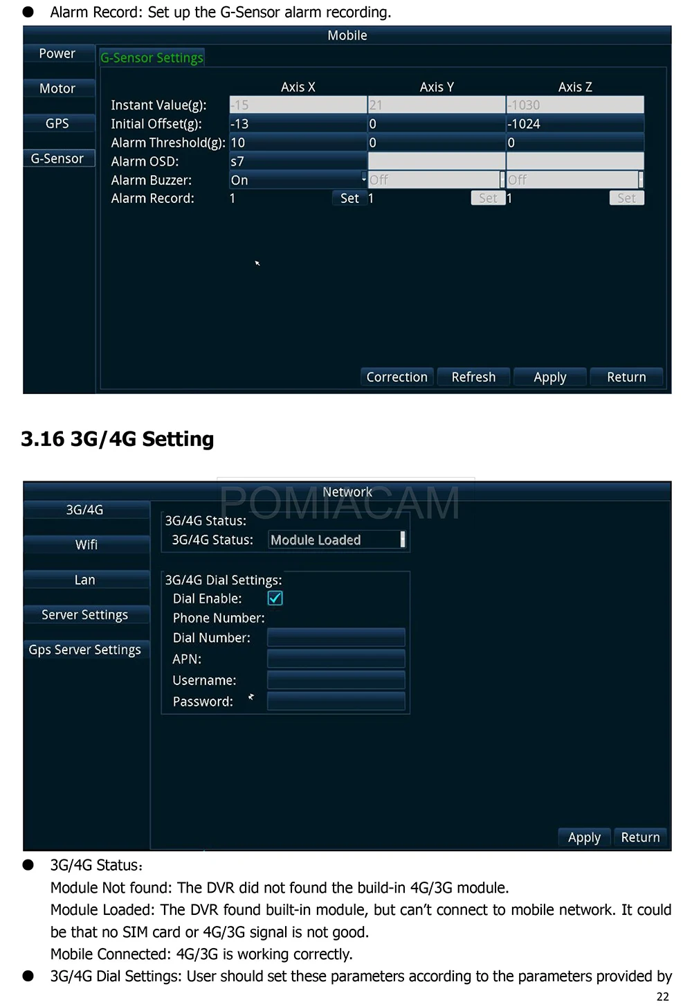 (Необходимо выбрать модуль GPS/4G) Акселерометр G-сенсор: поддерживает трехосевое обнаружение движения, а пользовательский диапазон настроек-Координаты X, Y, Z Информация о программном обеспечении Частота кадров канала: каждая камера поддерживает 1 ~ 30 кадров в секунду опционально Запись номерного знака: Поддержка редактирования и сопоставления информации о номерном знаке Именование камеры: Поддержка редактирования и изменения названий камер Цифровой водяной знак: поддержка наложения времени, номера номерного знака, номера камеры, информации о местоположении, скорости и т. д. Расписание; h/m/d и другие три варианта Автоматическое покрытие: Поддержка автоматического покрытия Воспроизведение изображения: Поддержка локального воспроизведения видео, управление видео файлами по времени, сигнализации и т. д. Скорость воспроизведения: Поддержка быстрого/медленного воспроизведения 1/32 ~ 32 раза Программное обеспечение (только для моделей 4G) Анализ воспроизведения ПК: воспроизведение видеофайла на стороне ПК и одновременный анализ информации об автомобиле в файле Программное обеспечение управления платформой CMSV6: поддержка предварительного просмотра/позиционирования в реальном времени/воспроизведения треков/выдачи центральных команд/удаленного обновления системы/настройки параметров и т. д. (заказывайте только продукты 4G по этой ссылке: (Если вам нужна модель 4G/WIFI, пожалуйста, закажите по этой ссылке:Https://www.aliexpress.com/item/1005001808538337.html?spm=5261.ProductManageOnline.0.0.7b984edfOAGLw3)