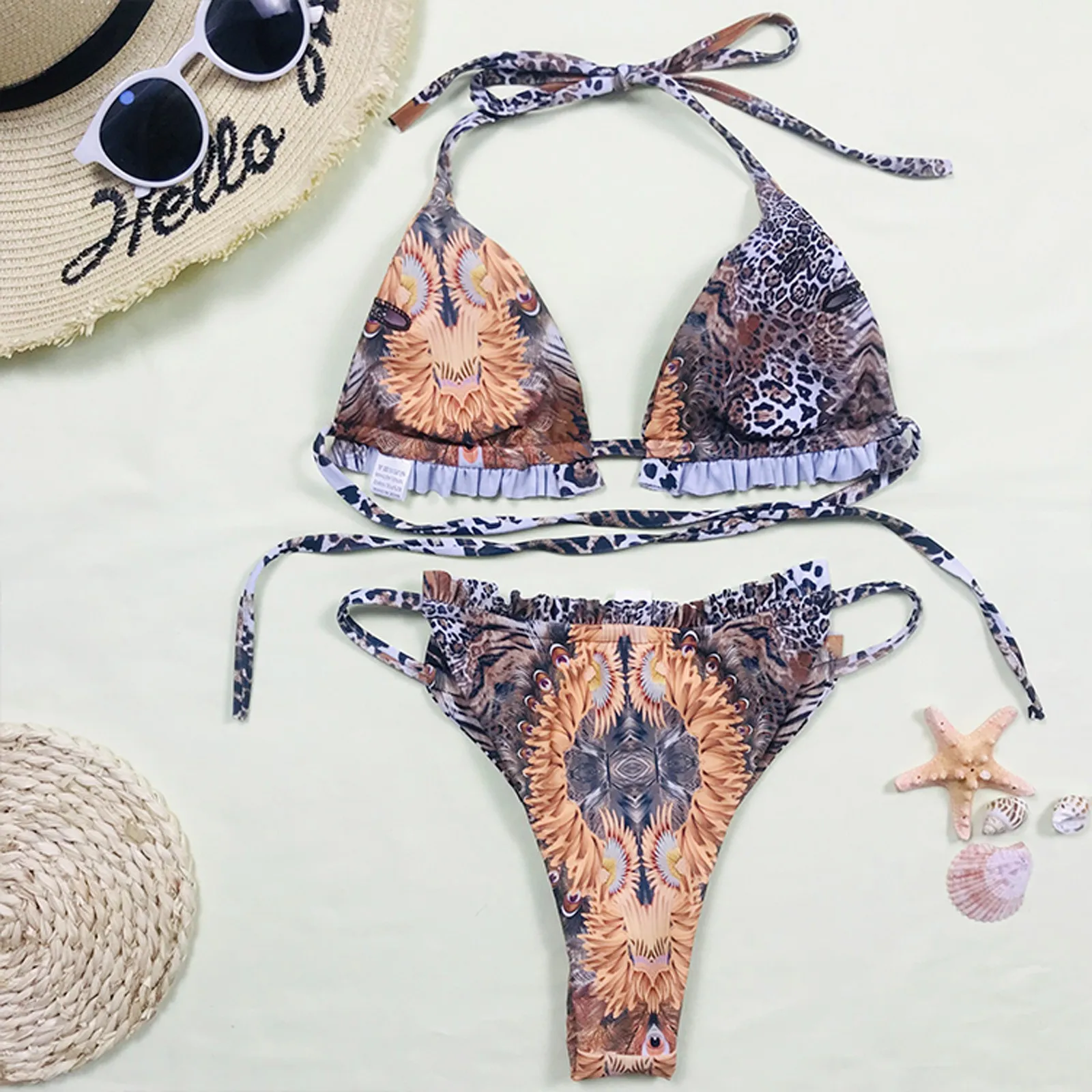 Комплект из 3 предметов, бикини, наборы, сексуальный купальник с леопардовым принтом купальник Для женщин через шею, купальник, пуш-ап, комплект бикини с принтом купальный костюм пляжный бикини 2021