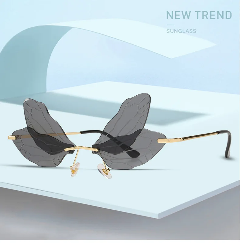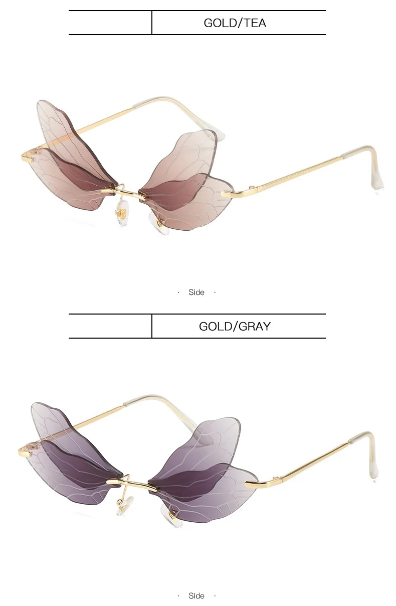 Солнцезащитные очки женские, без оправы, с металлической бабочкой