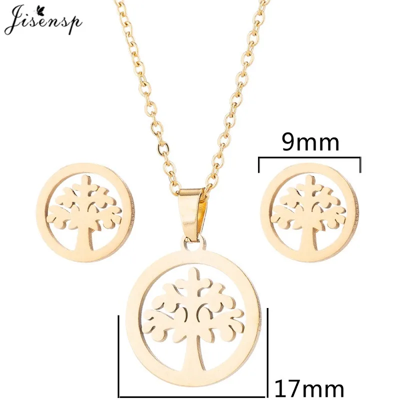 Наборы из нержавеющей стали для женщин и мужчин, богемные винтажные ожерелья с древом жизни, ювелирные изделия, чокер с Кленовым листом, ожерелье, серьги