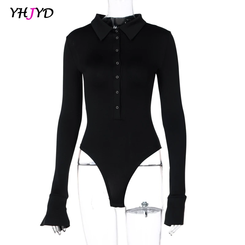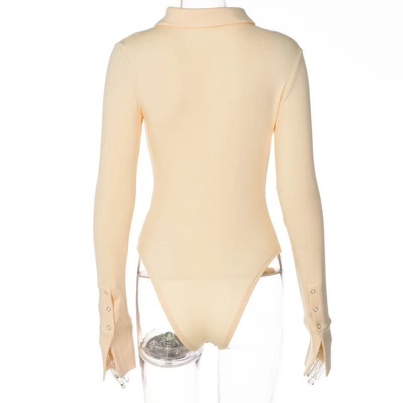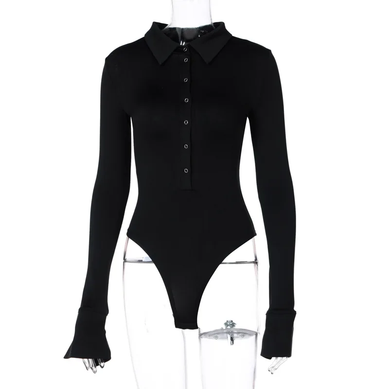 Женское боди с длинным рукавом, облегающий боди на пуговицах с отложным воротником, Черный Белый Коричневый комбинезон, Элегантный Модный комбинезон, Осень-зима 2021