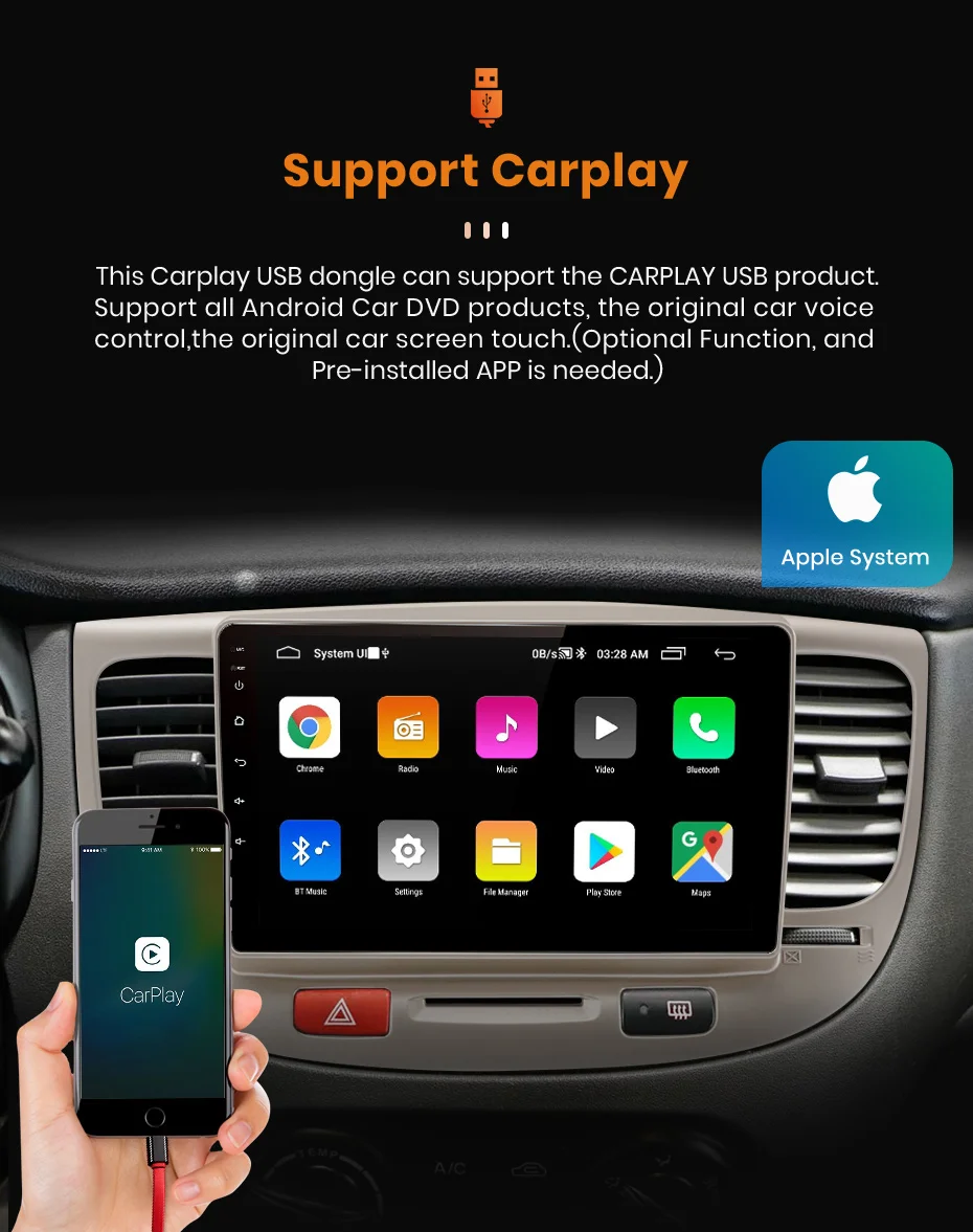 > Только для 4 Гб + 64 Гб версии> Этот DVD обеспечивает usb-разъем, который поддерживает подключение к телефону, легко управлять и обрабатывать Iphone через устройство. Он называется ZLINK в системе