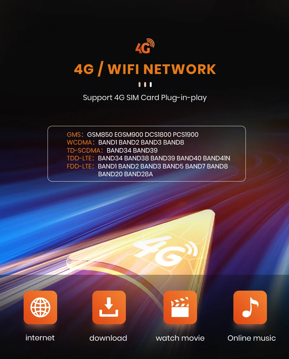 > Благодаря сети 4G и встроенному wifi вы можете наслаждаться серфингом в Интернете независимо от того, где вы находитесь, что делает его возможным для онлайн-навигации/музыки/кино и т. Д.> Вставьте sim-карту перед включением устройства.