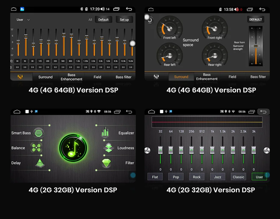 > Со встроенным усилением 4*50 Вт, музыка становится четкой даже при высоких томах.> По индивидуальному заказу звуковая с вашими личными предпочтениями с 9 графический эквалайзер. Поп, рок, джаз,Классический, плоский, пользовательский, голосовой. Несколько вариантов настройки позволяют адаптировать аудио опыт по своему вкусу.