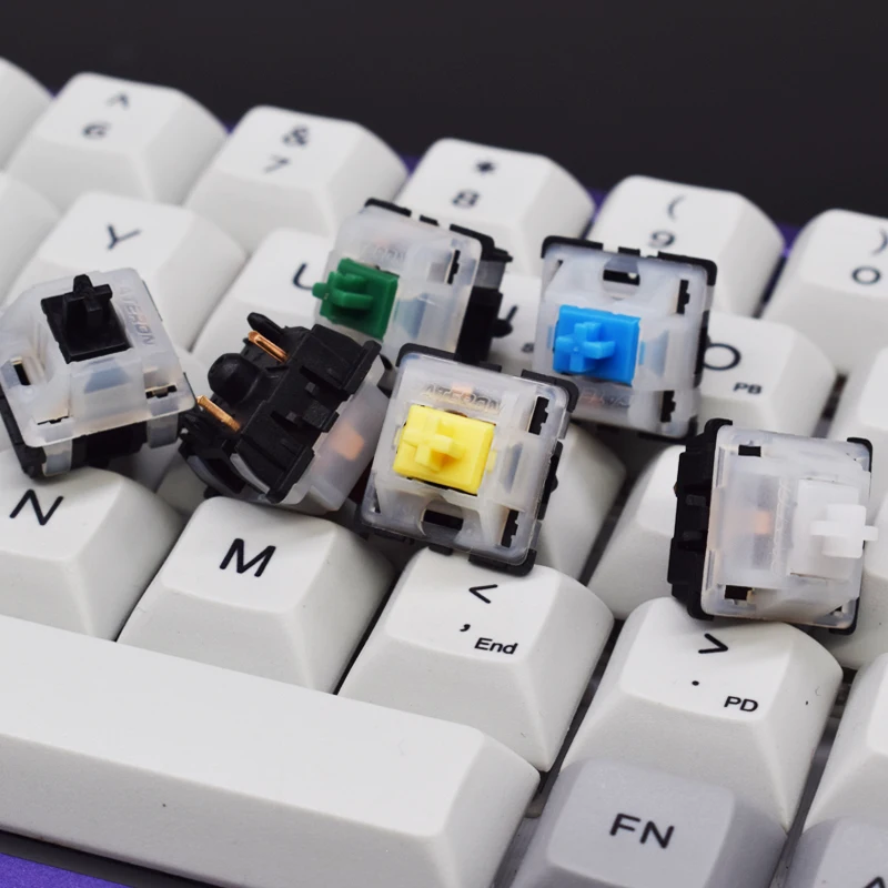 идеальные линейные свитчи( вместо клиров попросил продавца положить желтые), помле смазки по плавности не уступают aqua king, а звук мне нравится больше