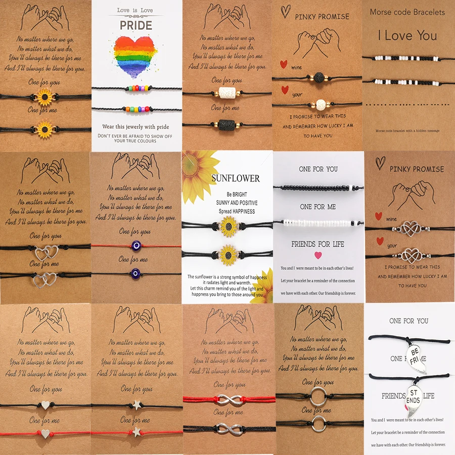 2 шт.компл., лучшие браслеты дружбы для пар для женщин и мужчин, лава, камень, глаз, сердце, шарм, веревка, браслет с цепью, пожелания, ювелирные изделия