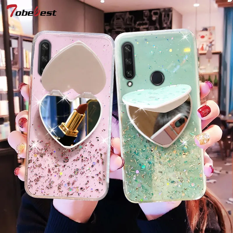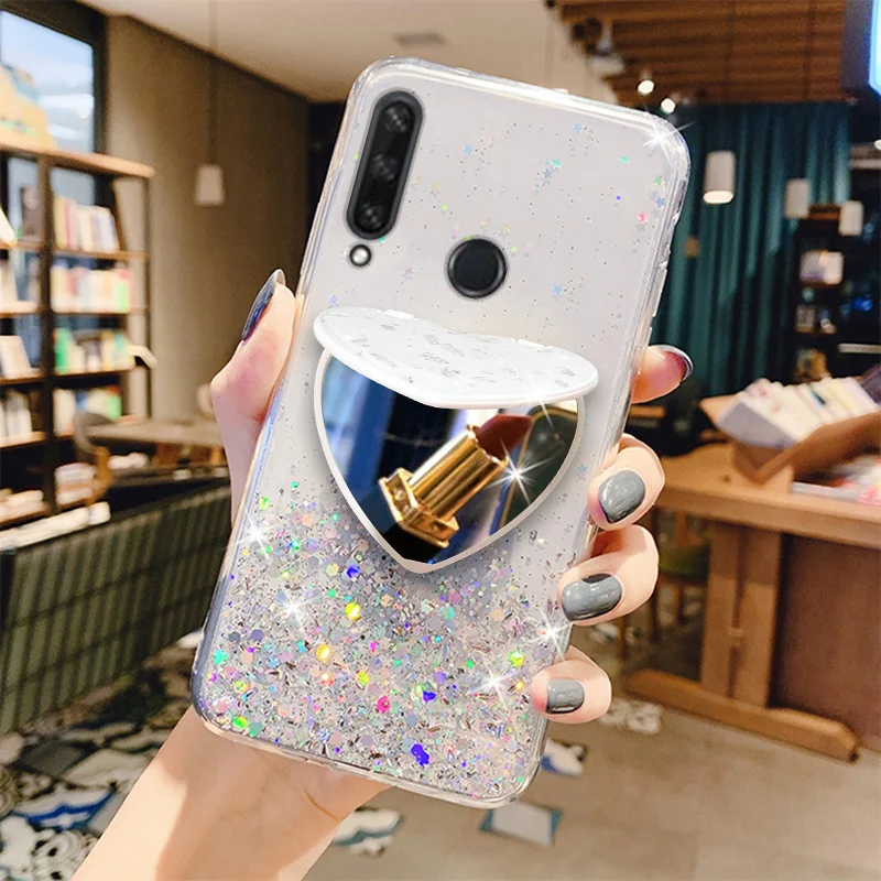 Чехол для Huawei Y6P, Y5P, Y7P, Y8S, Y7A 2020, Y9, Y7, Y6, Y5 Prime 2019, зеркальный, с блестками, мягкий силиконовый чехол