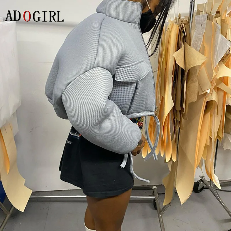 Модная женская короткая куртка Adogirl Y2k, зимние, Осенние, зимние, Осенние, толстые теплые парки, стандартный воротник, пузырьковое пальто, однотонная верхняя одежда