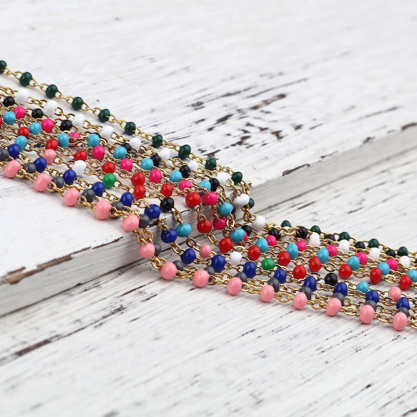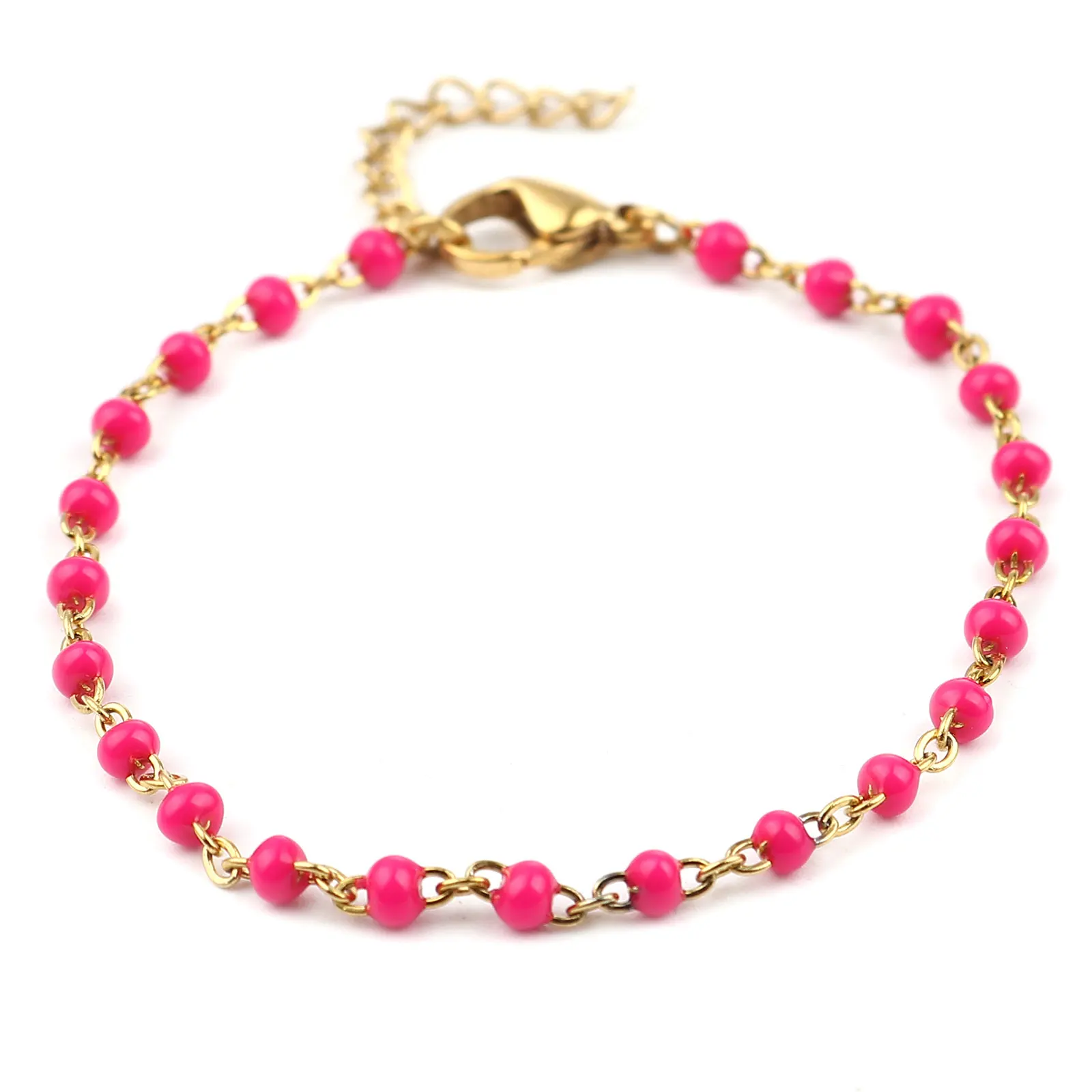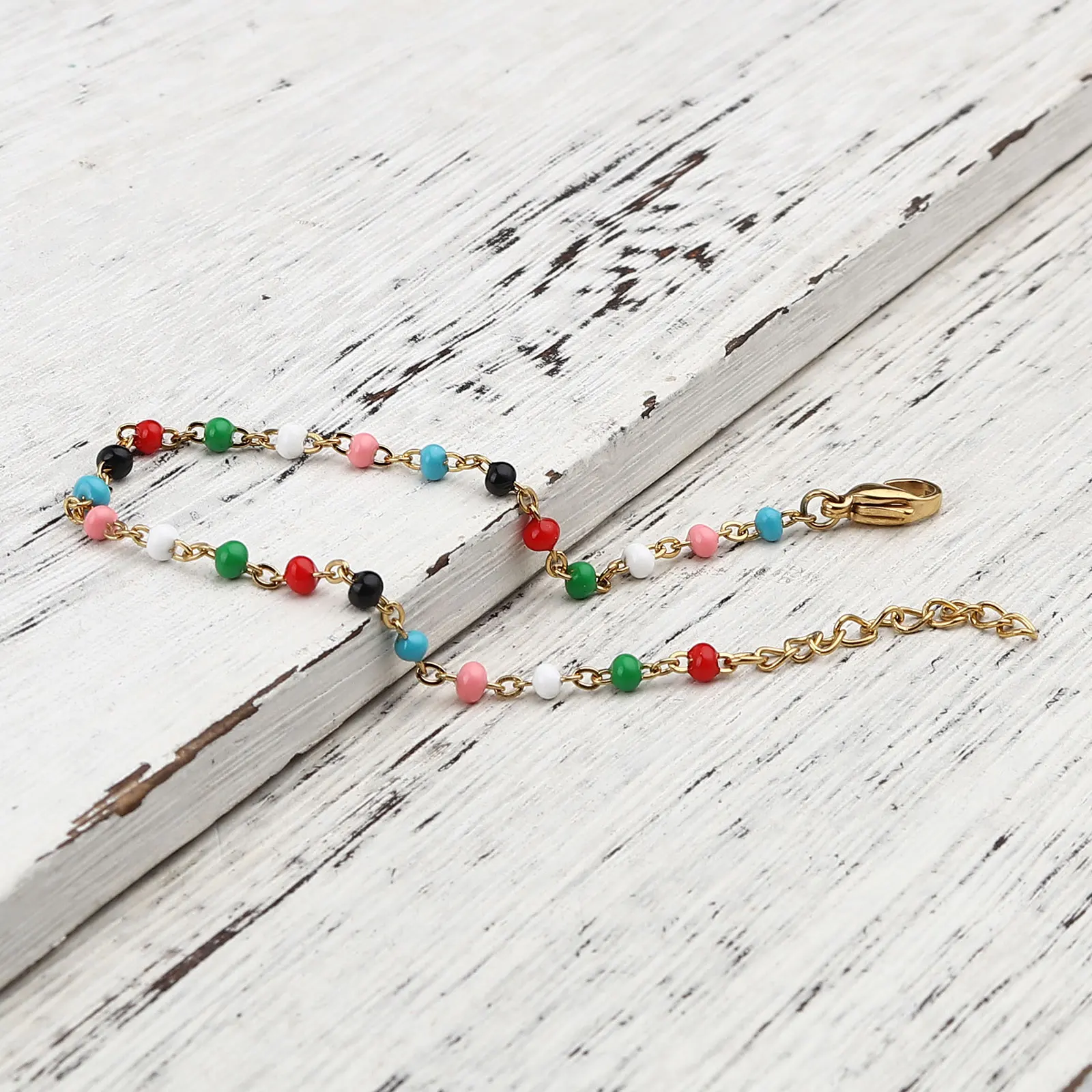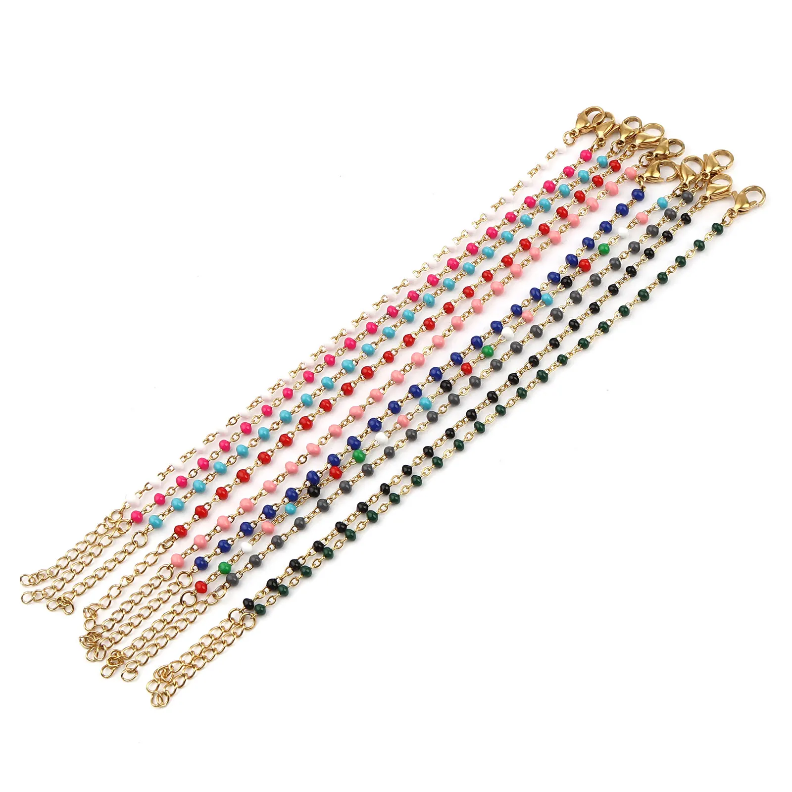 Браслет из эмалированных бусин, из нержавеющей стали, браслет-цепоч...