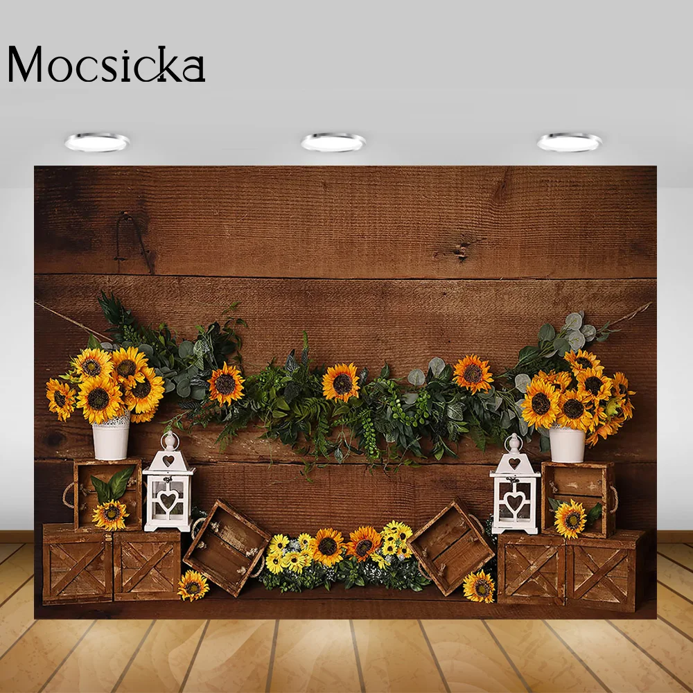 Фон для фотосъемки детей с подсолнухами тортом на день рождения коричневые деревенские подсолнухи пчела Портрет фон для фотосъемки
