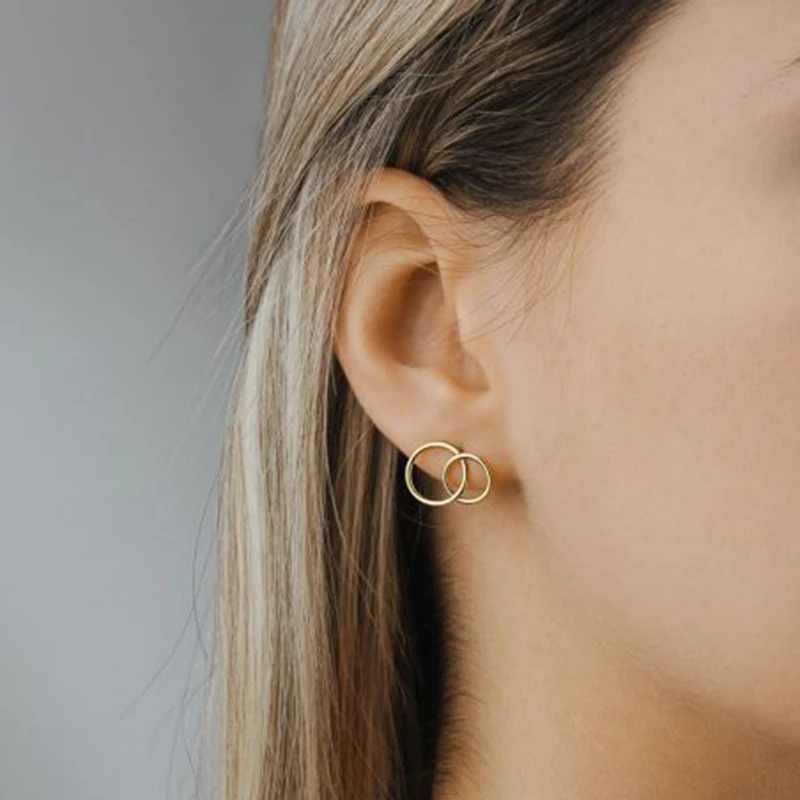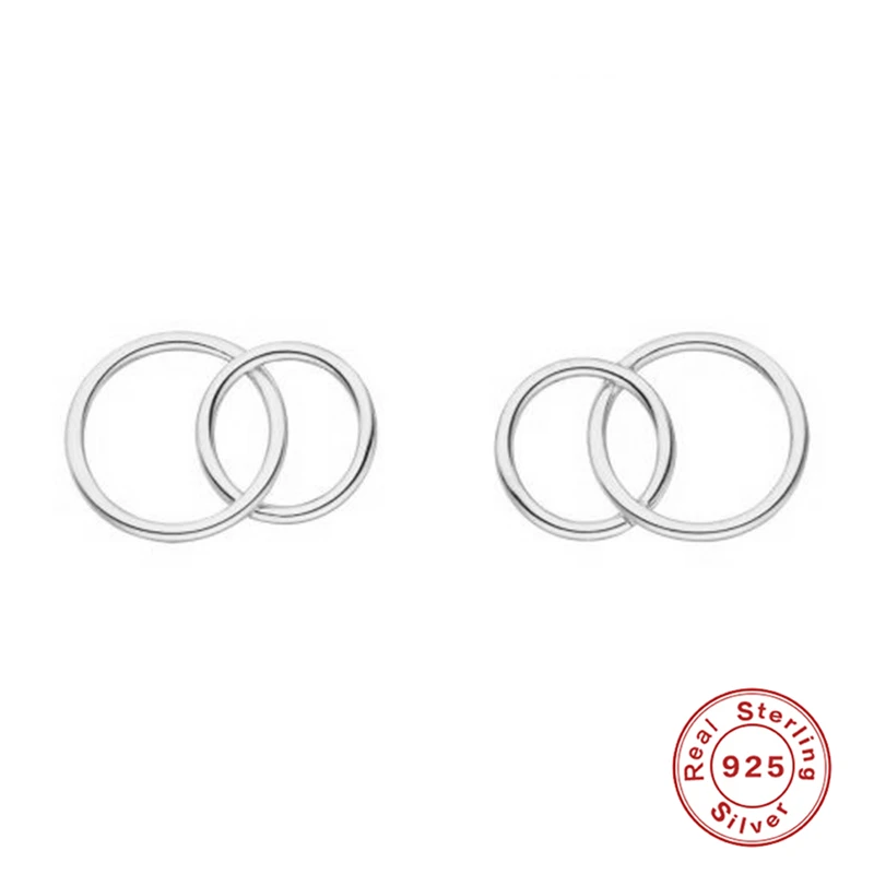 Серьги-гвоздики женские с двойным кольцом, серебристые и золотистые, 925