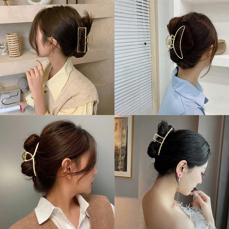 2021 металлический полый геометрический коготь для волос для женщин, женские элегантные аксессуары для волос, крестик, краб, зажим для ванны, модный головной убор для девочек