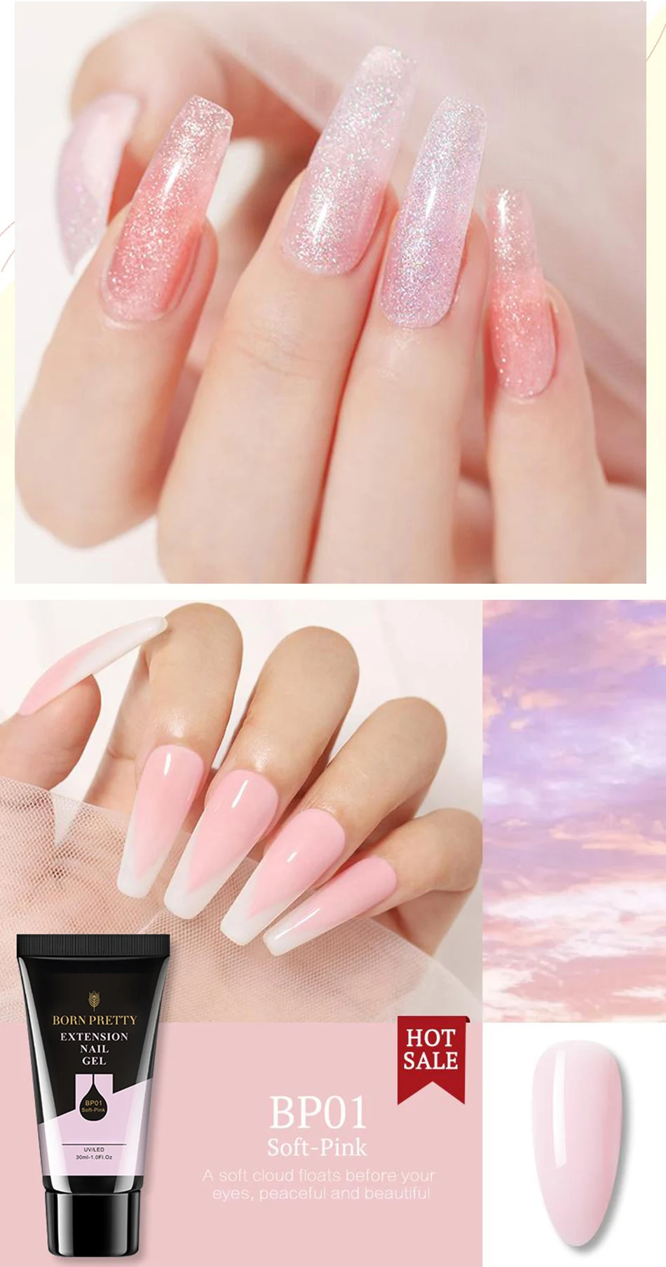 BORN PRETTY 30 мл блестящий гель для наращивания, серебристо-розовый акриловый гель для наращивания пальцев, гель для размачивания