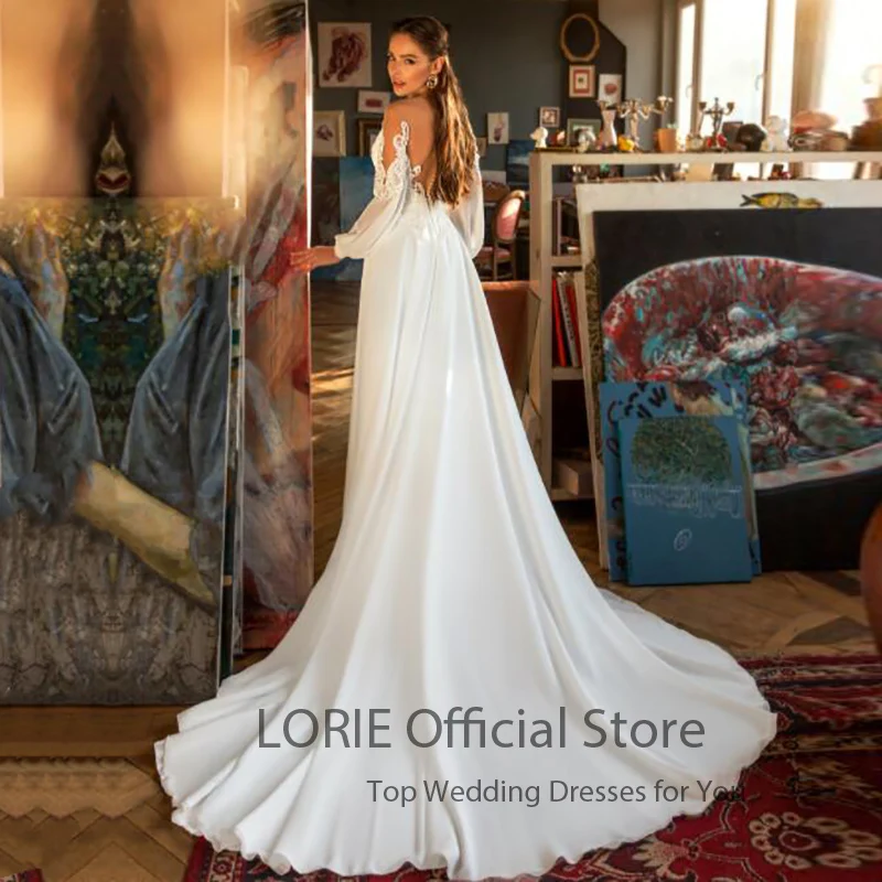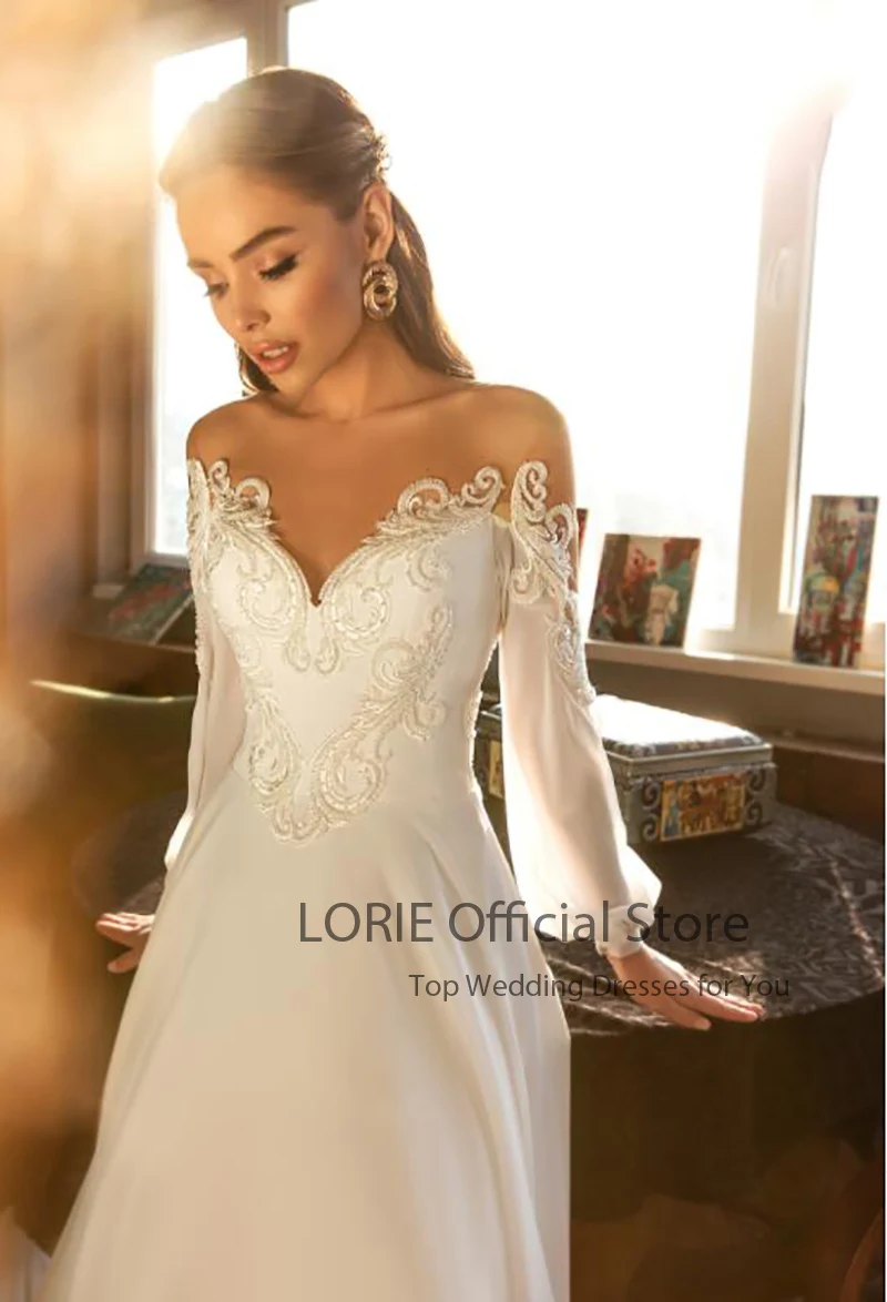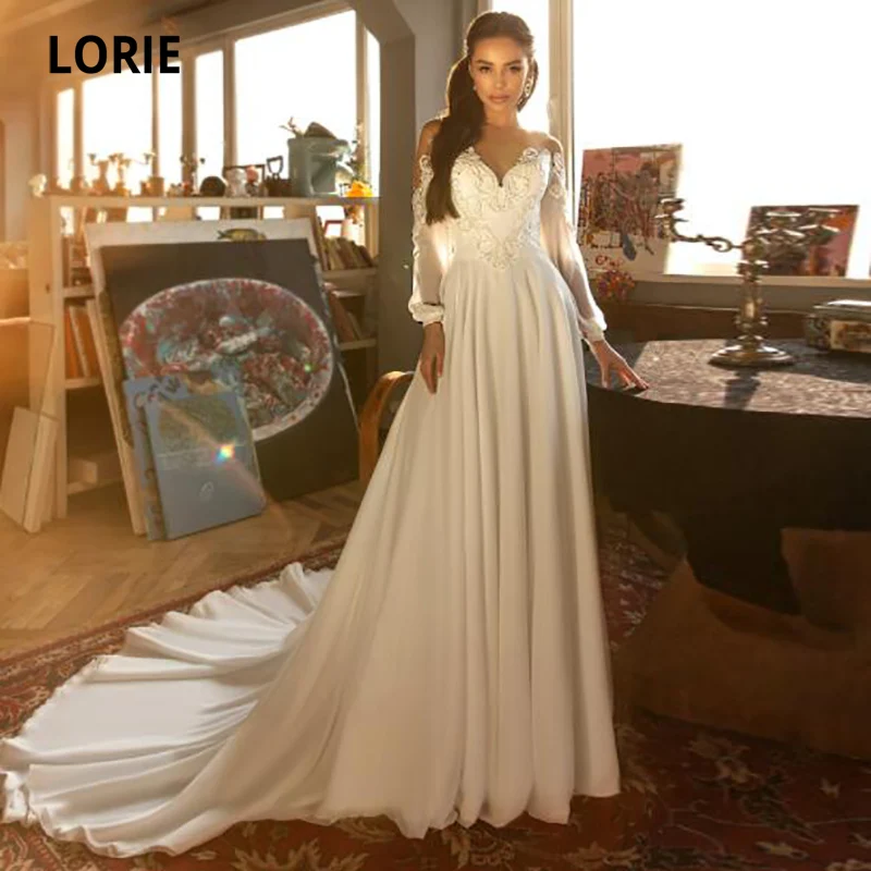 Свадебные платья LORIE в стиле бохо, ТРАПЕЦИЕВИДНОЕ Прозрачное платье с круглым вырезом и длинными рукавами, эластичное женское платье невесты 2021