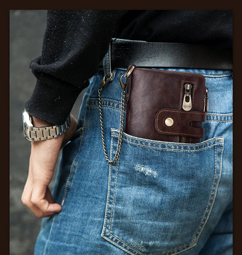 Мужской кошелек из натуральной кожи, бумажник кофейного цвета с монетницей, кредитницей и цепочкой, мужской держатель, Прямая поставка