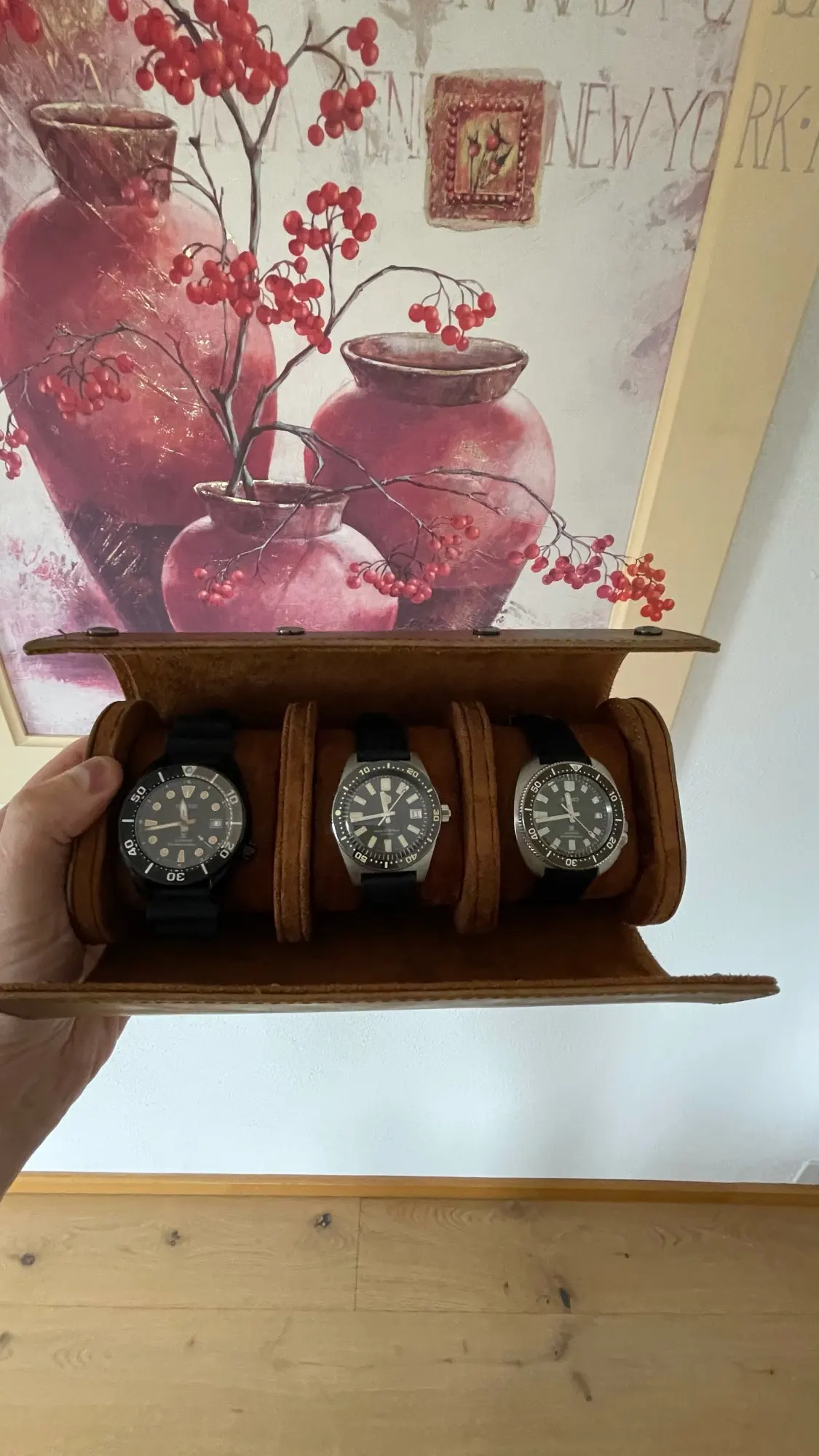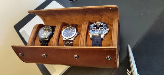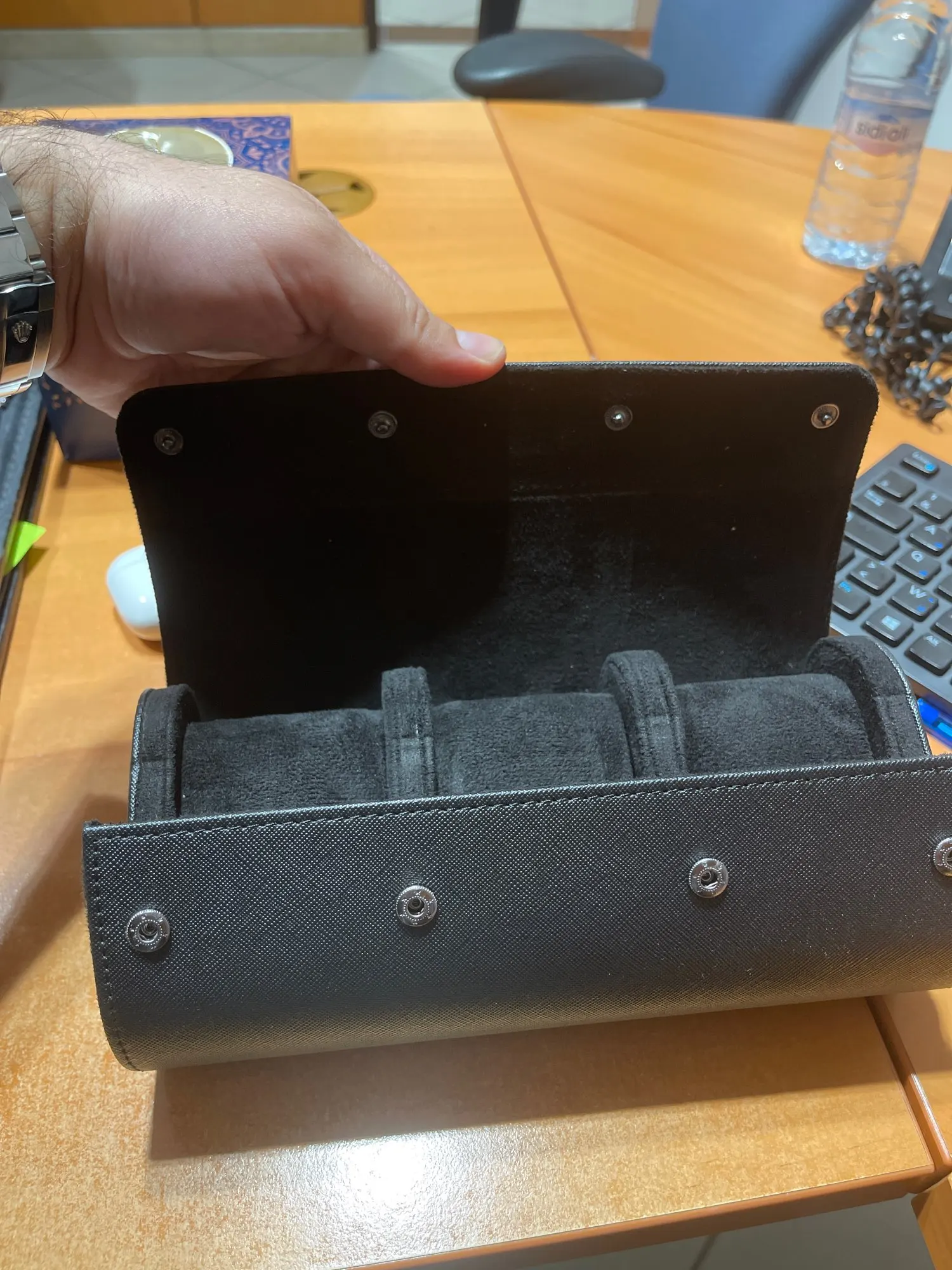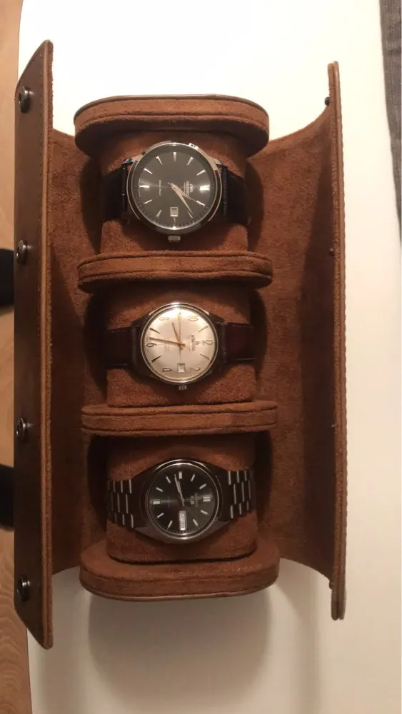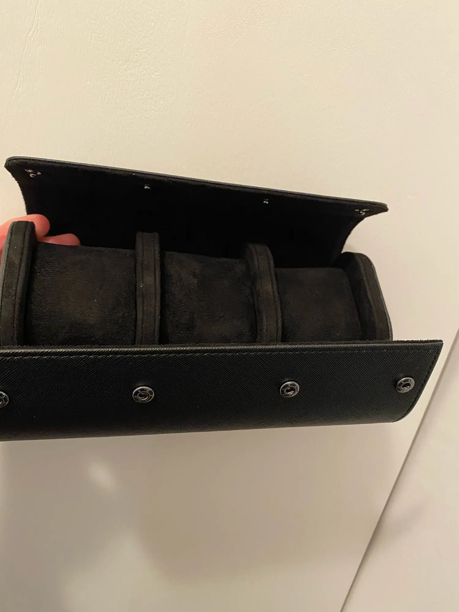 Great looking watch roll. For the price great quality. All looks well made and feels solid. Nice soft interior and outside looks like saffiano leather.