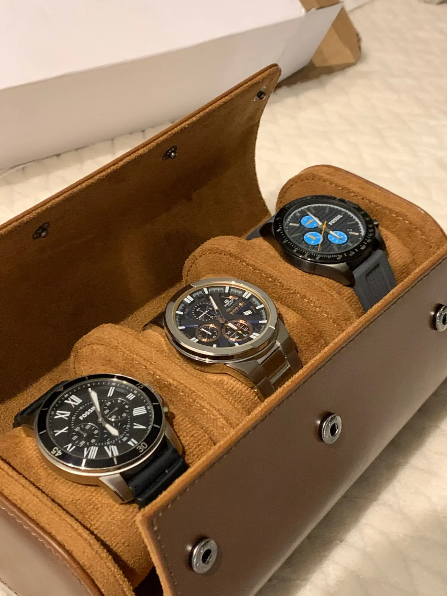 Дорожный Чехол для часов с 3 слотами, шикарный портативный винтажный кожаный бокс для хранения часов С нескользящими органайзерами для часов