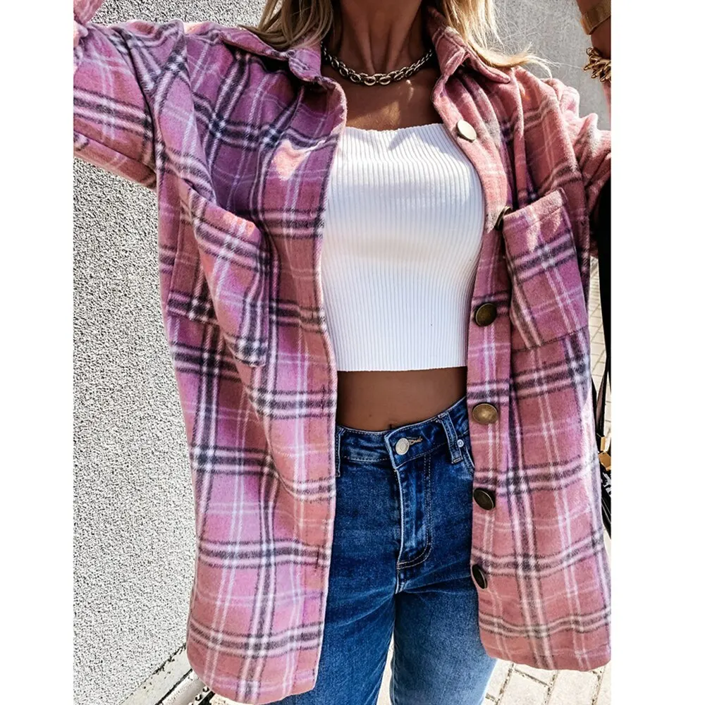 Женский пуховик в клетку, длинное пальто в стиле оверсайз из плотной шерсти, уличная одежда, зима 2020