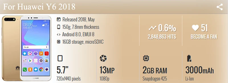 Номер моделиY6 2018 /Y6 Prime 2018/For Honor 7A/ATU L11 L21 L22 LX1