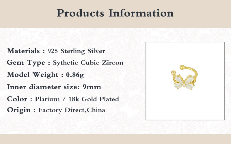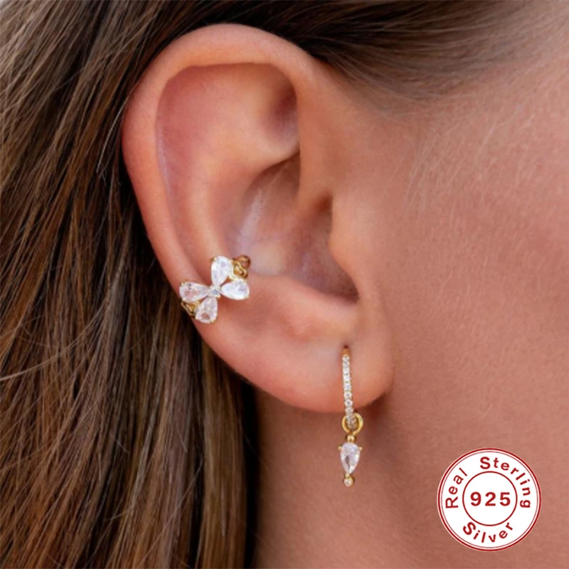 Роскошные серьги-каффы в стиле хип-хоп в стиле панк S925 из стерлингового серебра с бабочками, серьги-клипсы Ziron, серьги-клипсы без подделки для пирсинга