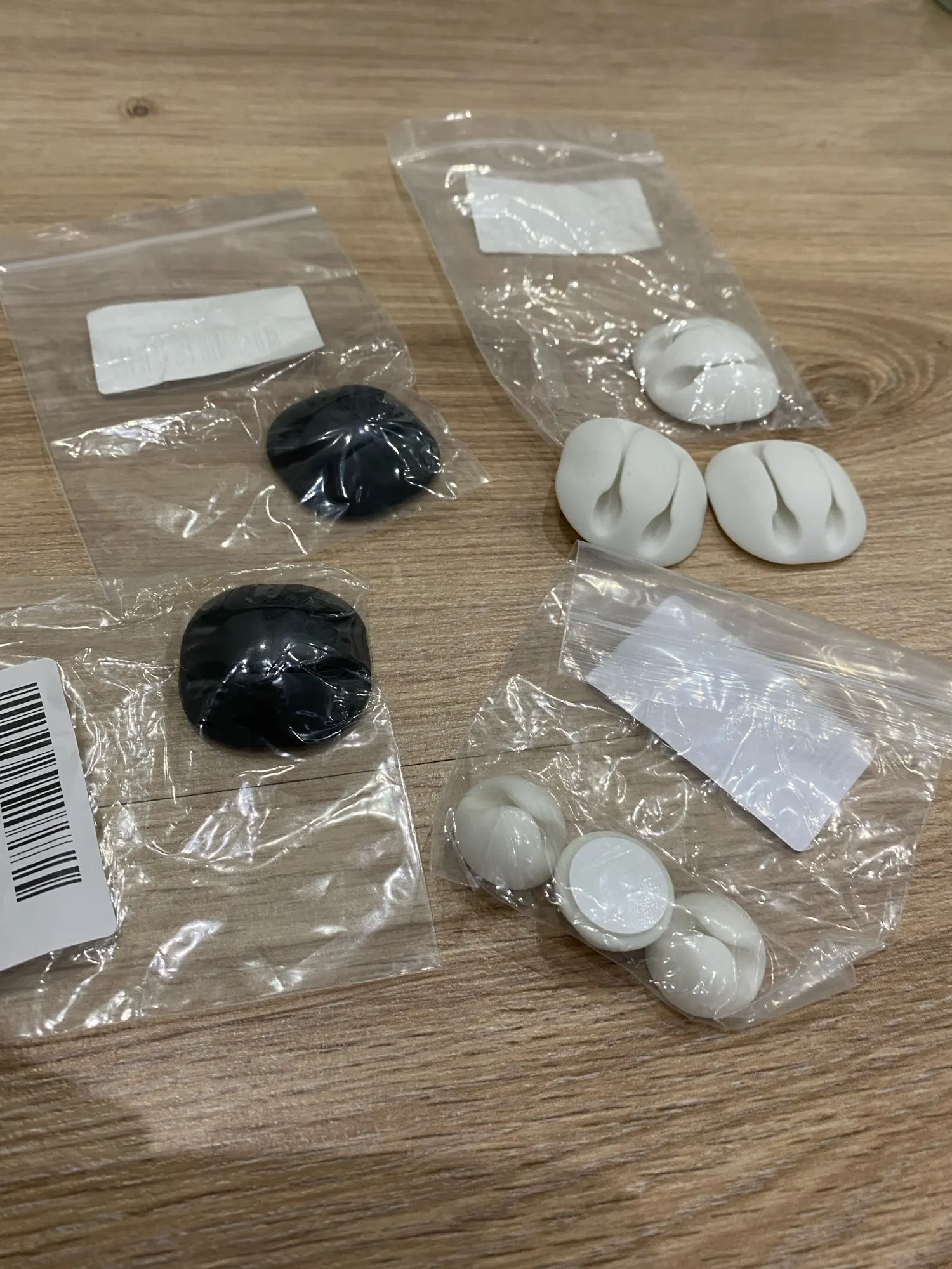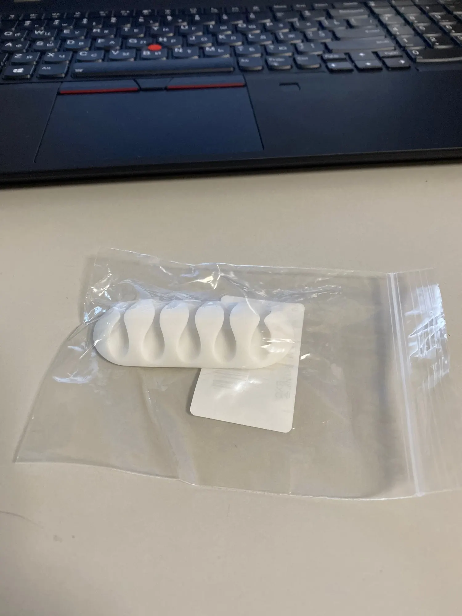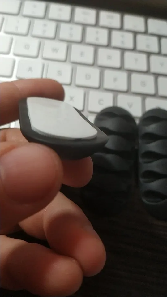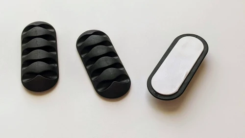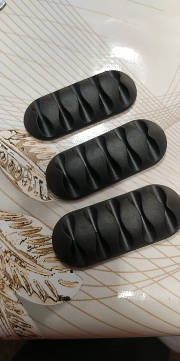 Обычный фиксатор проводов. Силикон? Вряд ли, скорее пластик софт-тач. Но провода держит уверенно, а чего еще нужно? Двусторонний скотч правильный, держит отлично. Доставка меньше месяца. Трек отслеживался. Теперь жене выберу на работу. Распаковку смотрите на моем канале (как всегда, все пробелы убрать!): https : / / youtu . be / q3RYWypfRqk