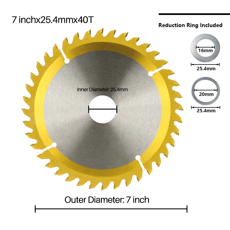 Диск для циркулярной пилы XACN, 7 дюймов, 40T, с твердосплавными наконечниками, для резки дерева, ПВХ, пластика, с титановым покрытием