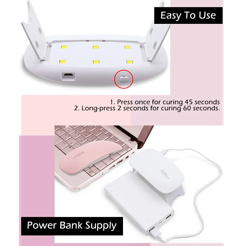 Сушилка для ногтей NAILCO SUNmini, светодиодная УФ-лампа для домашнего использования с Micro USB кабелем, 6 Вт, для гель-лака, маникюра, базового и верхнего покрытия
