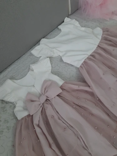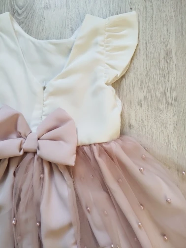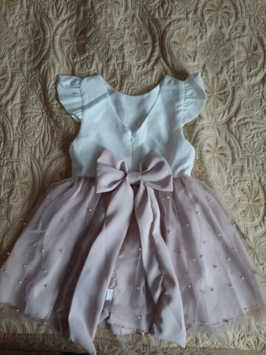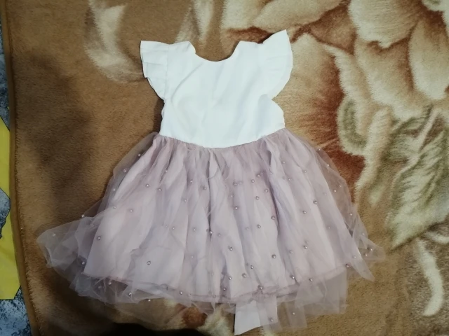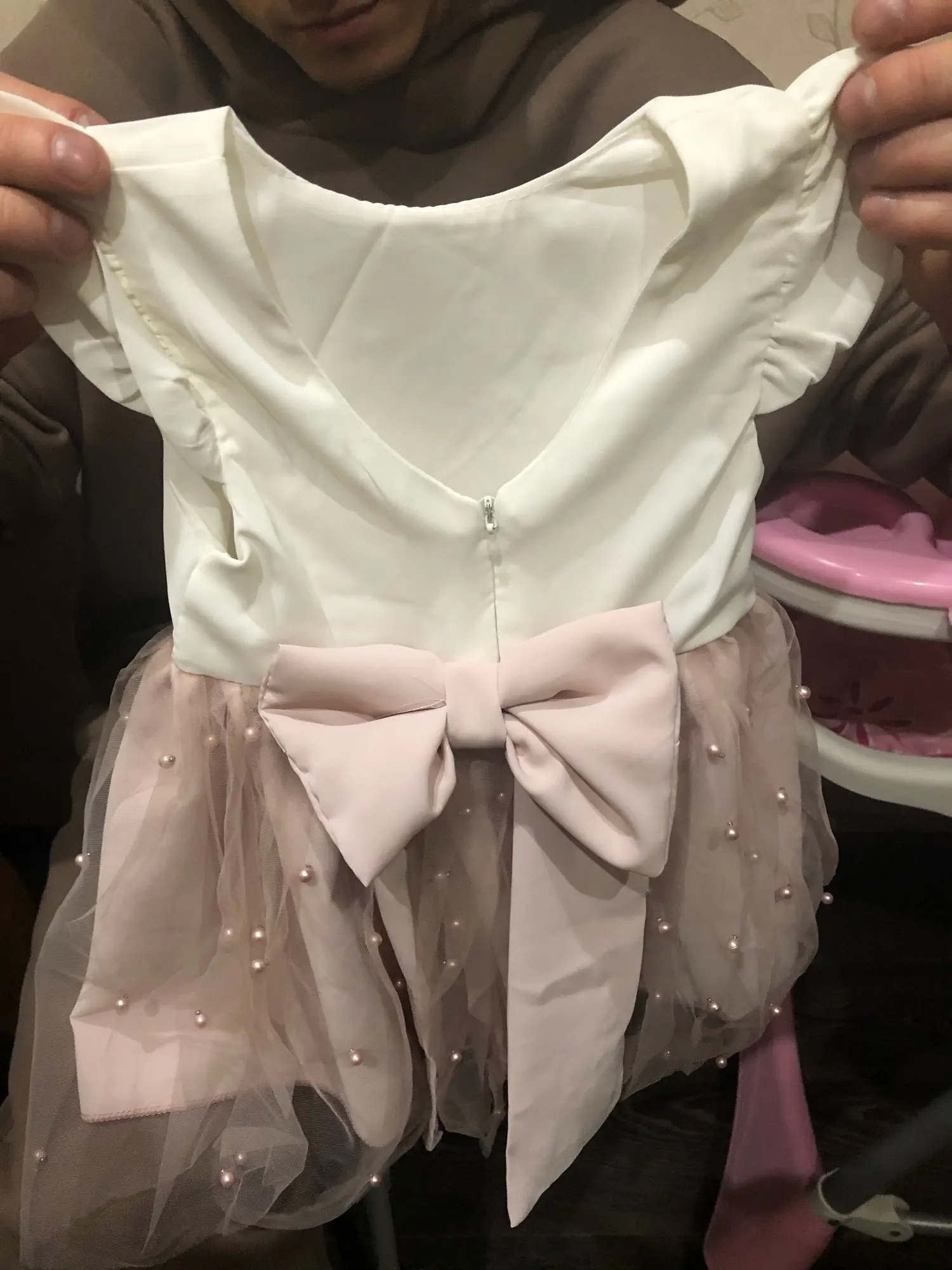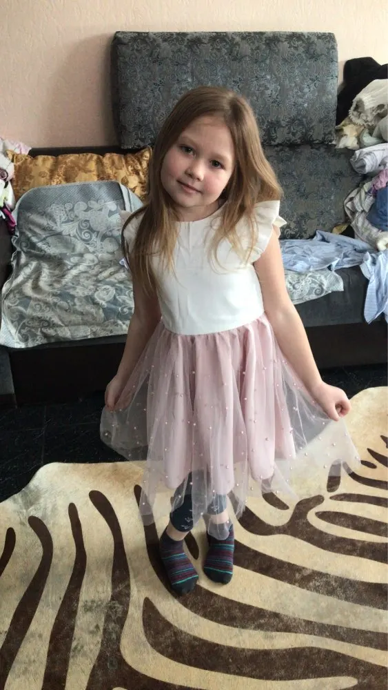 Прелестное платье, очень красивое. Брала дочке на 1 годик, размер взяла побольше и не прогадала. Безумно довольна покупкой, всё отлично. Платье точно, как на фото продавца, цвет нежный пыльно розовый, нитки не торчат, все бусины на месте. Доставка очень быстрая. Спасибо продавцу за хороший товар)