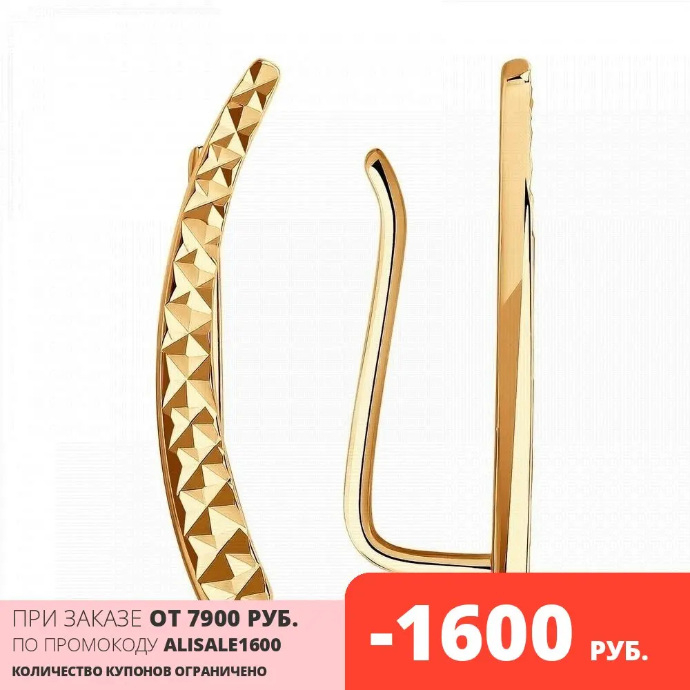 Серьги конго SOKOLOV из золота с алмазной гранью, Золото, 585, Женс...