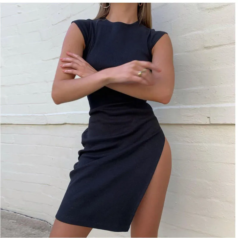 Платье-мини женское, с коротким рукавом, с разрезом сбоку