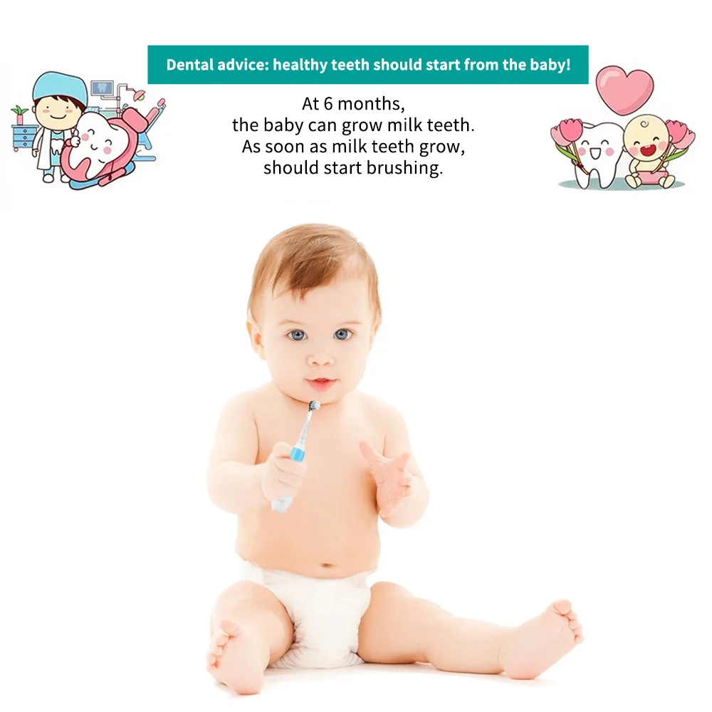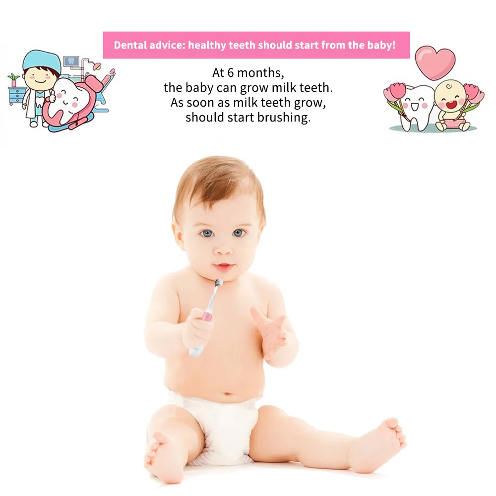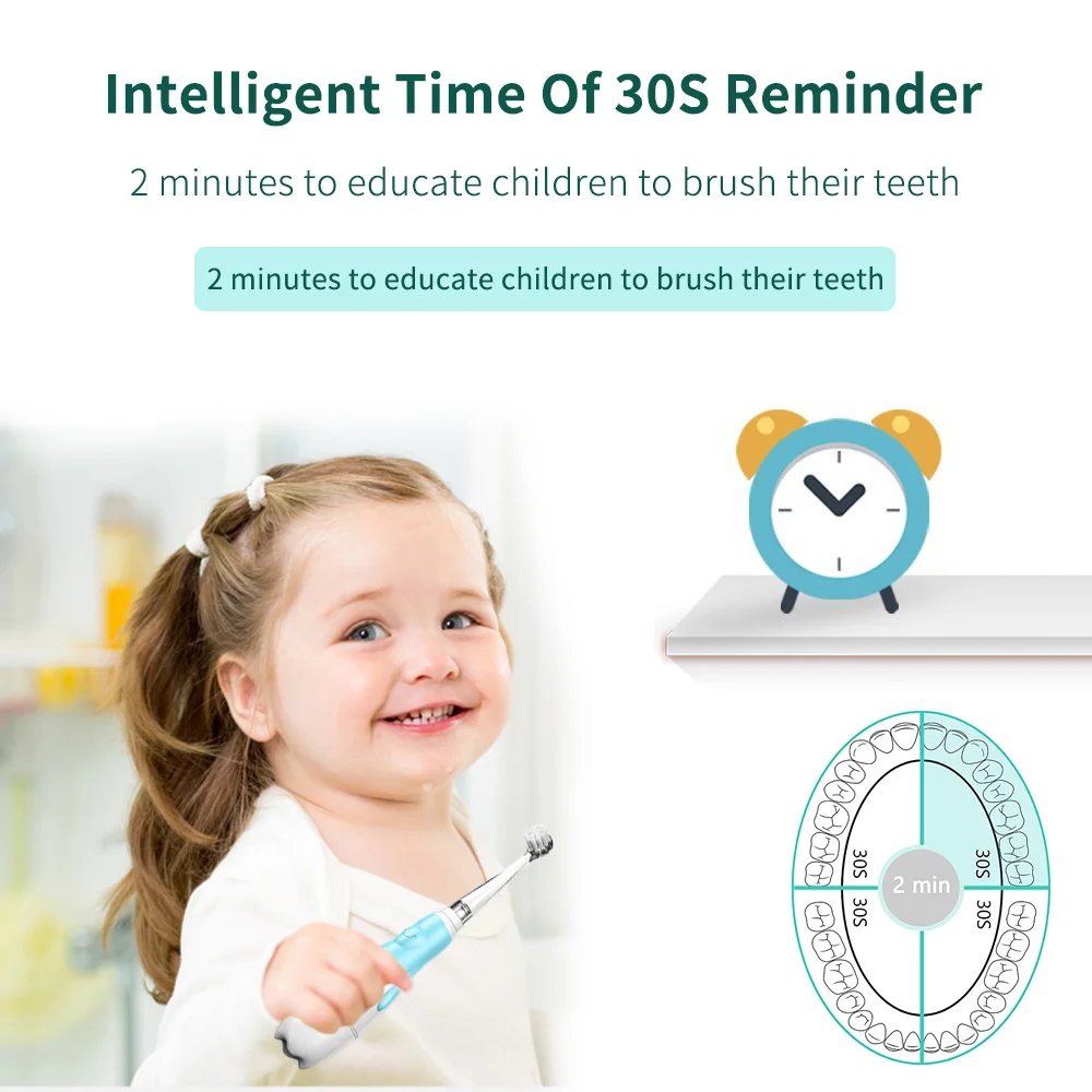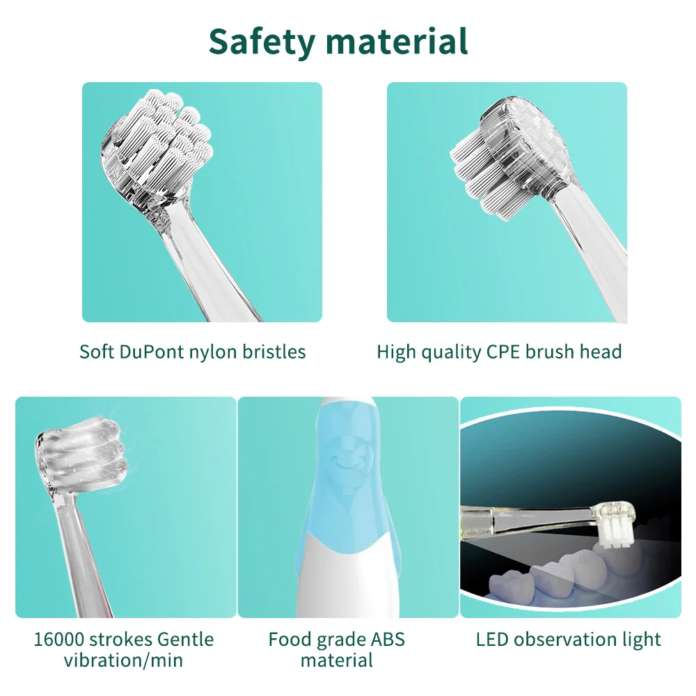 Особенности:1. Леди 16 000 ударов в минуту.2.Есть 2 типа сменных головок кистей: большиеГоловки кистей и маленькие головки кистей.3,2 минуту автотаймер обеспечивает стоматолог рекомендуемое время чистки.4,30 секундный интервал помогает чистить каждую область рта.5. Белый светодиодный светильник помогает матерям наблюдать за ростом зубов ребенка.6. Очень мягкая щетина DuPont, хорошо защищает зубы ребенка.7. Один аккумулятор может работать в течение 120 дней (в два раза в ширину 2 минут за день).